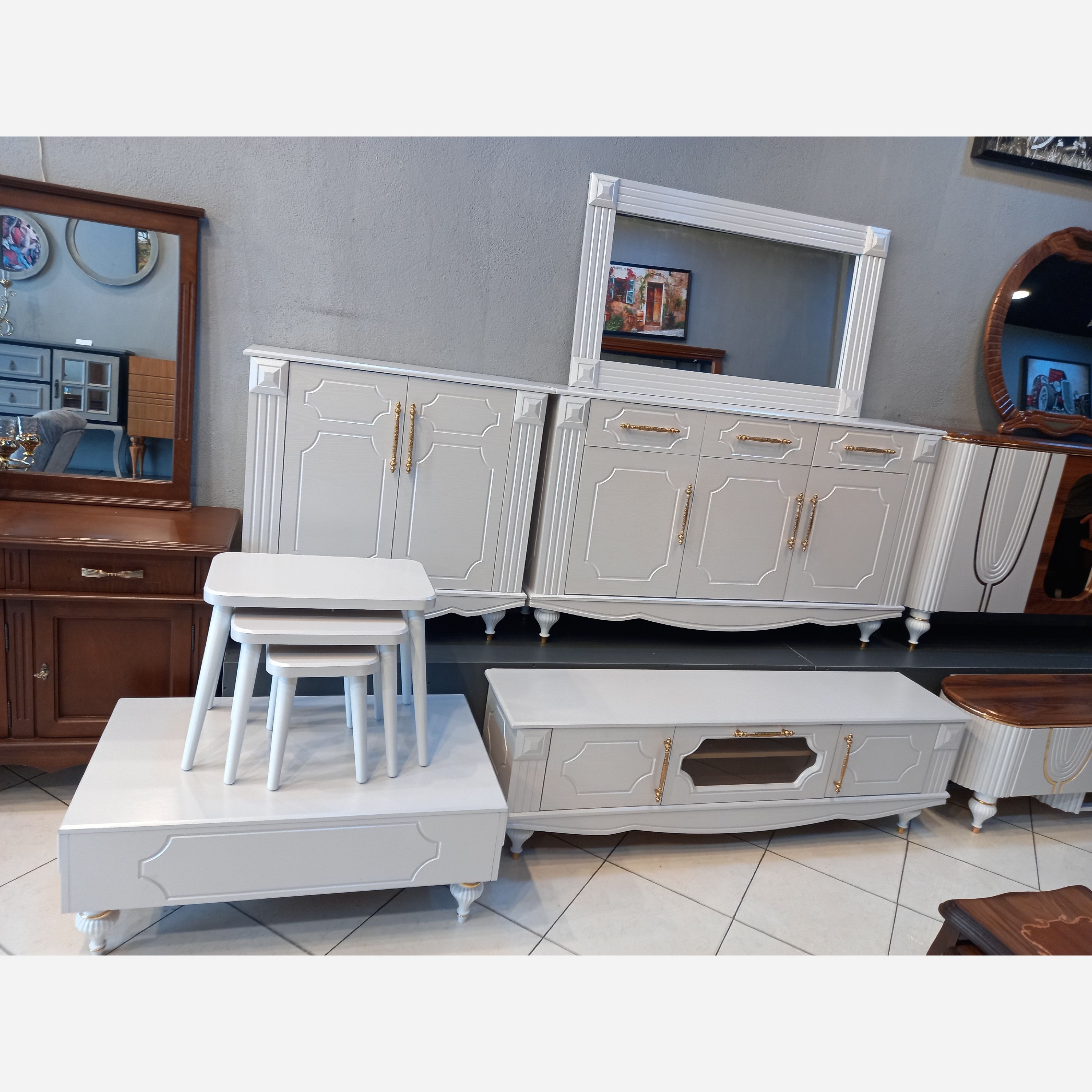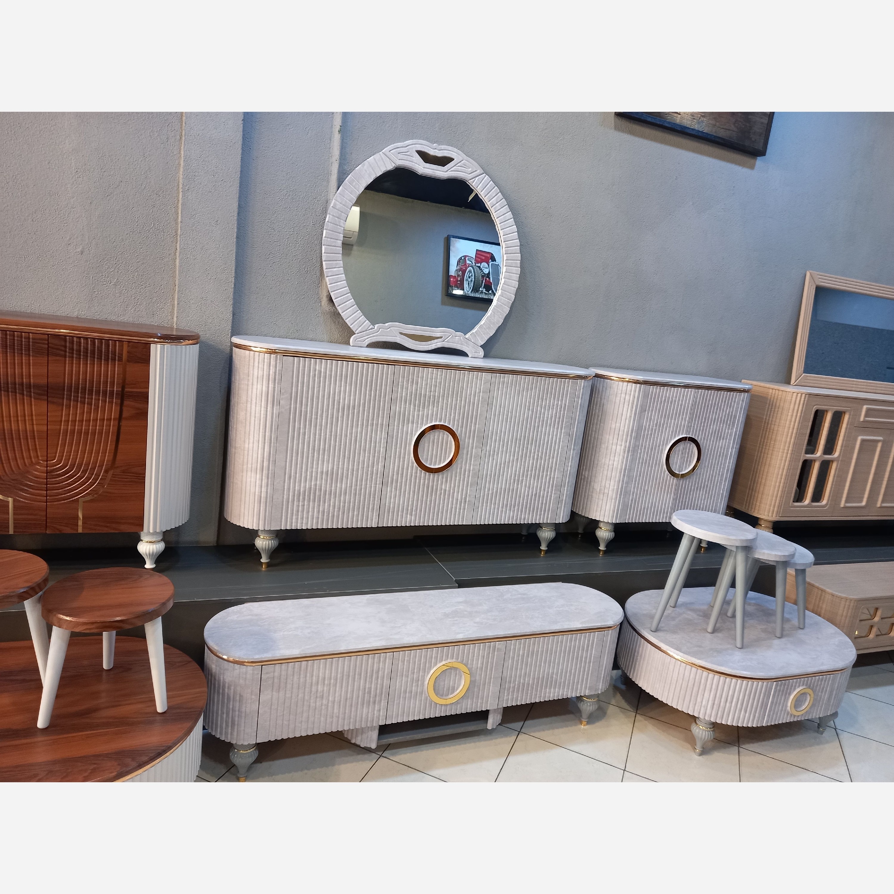 باسلام به مشتریان عزیز کنسول میز تی وی جاکفشی میز عسلی طرح و رنگ ابعاد دلخواهی هستش ی کار متفاوت و شیک آینه دار تک رنگ دو رنگ دارای نوار طلایی رنگ های دلخواه شما خرید هم به صورت تکی و ست کامل ما را به دوستان خود معرفی کنید متشکرم از برنامه خوب باسلام