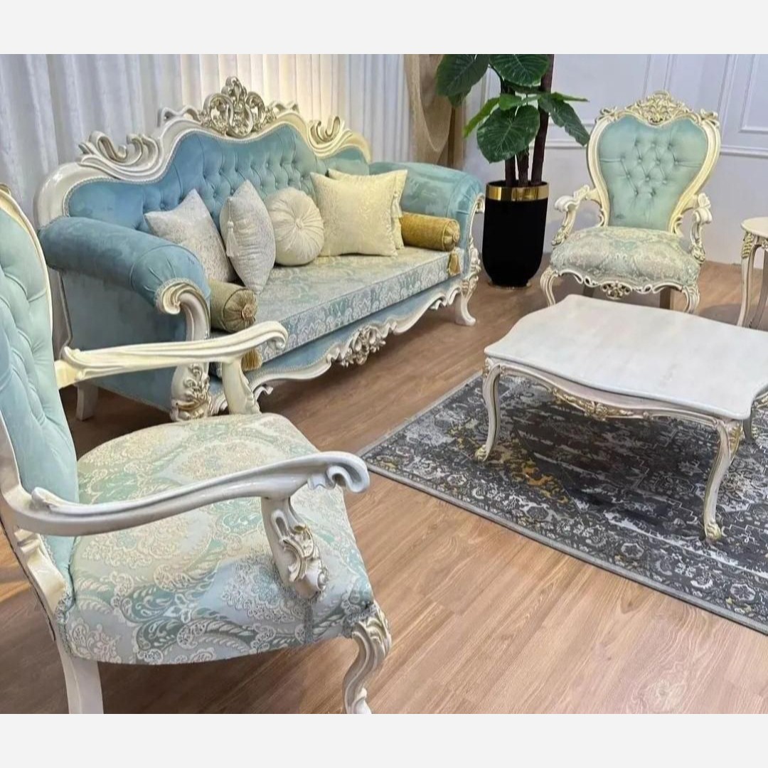 مدل کلاسیک افسون هفت نفره یک کاناپه سه نفره+ 4عدد تک نفره+ میزعسلی، ارسال به سراسر کشور😃 کلاف اصلی پارچه به سلیقه مشتریان عزیز رنگ چوب پلی استر درجه یک به انتخاب و دلخواه شما فوم سرد در کار استفاده شده رنگکاری با بالاترین دقت انجام می شود. آماده کردن حدود 20روز کاری زمان می برد.