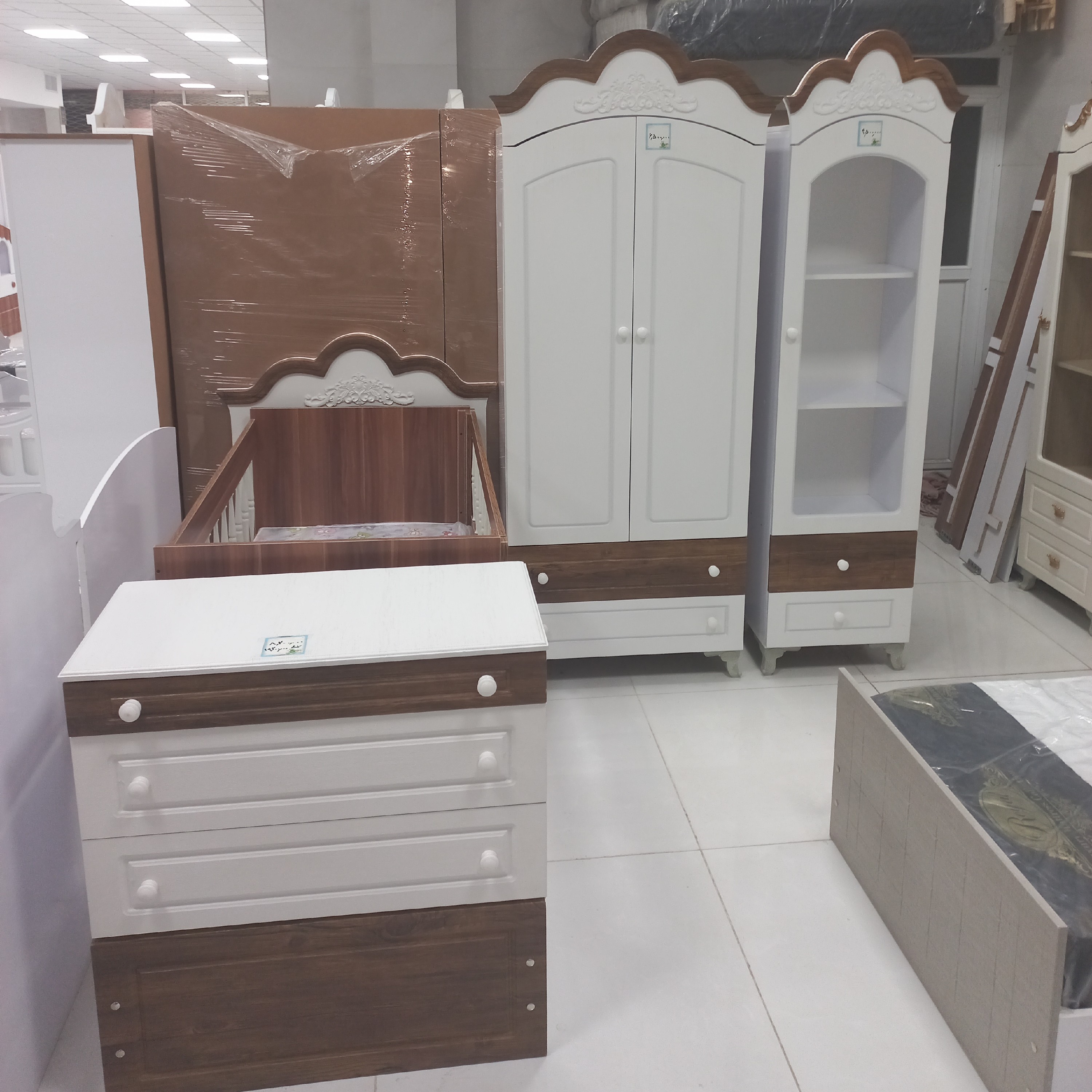 سرویس خواب نوزادنوجوان تخت4کاره شامل تخت نوزادگهواره تخت نوجوان ودراور.کمدو ویترین جنس ام دی اف درجه یک با روکش ممبران مبلمونسرا مدل 226919