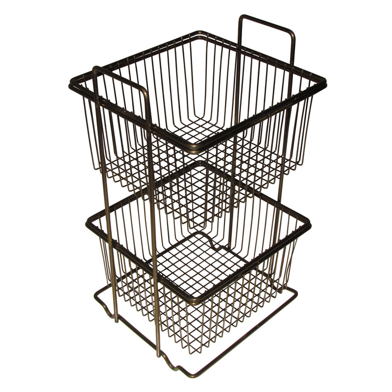 سبد سیبزمینی و پیاز 2 طبقه نهتنها برای نگهداری سیبزمینی و پیاز مناسب است بلکه فضای آشپزخانه شما را زیبا خواهد کرد. این سبد 2 طبقه مربع دارای پایهای فلزی بوده و دو سبد فلزی دارد که به واسطه لبه سبد روی پایه قرار میگیرد. ارتفاع کلی 47 سانتی متر است و هر کدام از سبدها دارای ابعاد 25 × 25 سانتیمتر هستند. برای خادههایی که حجم متوسط سیبزمینی و پیاز را خریداری میکنند این سبد دوطبقه قطعا بسیار مناسب خواهد بود. بهدلیل اینکه هوای کافی در این سبد در جریان است، فرآیند فاسد شدن موادغذایی دیرتر صورت میگیرد. در کنار کاربردی بودن این محصول، بهدلیل طراحی زیبایی که دارد باعث ایجاد جلوهای خاص در آشپزخانه خواهد شد.