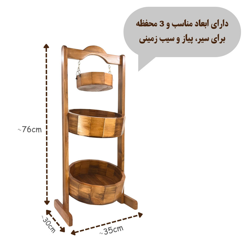 سبد سیب زمینی و پیاز مدل 3 طبقه چوبی گرد کد JP01 مبلمونسرا مدل 210648