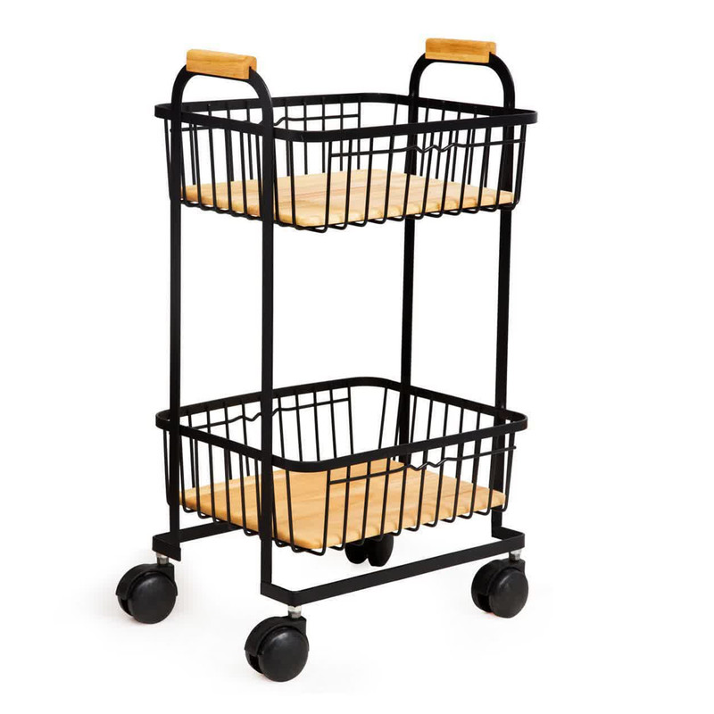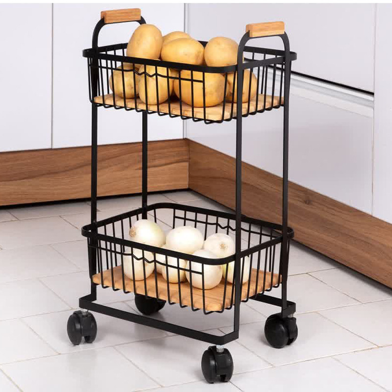 این محصول سبد سیب زمینی و پیاز دو طبقه دارای بدنه فلزی به رنگ مشکی الکترو کوره می باشد و در مقابل زنگ زدگی مقاوم است. این محصول چهار چرخ بسیار کاربردی و مقاوم دارد بسیار کاربردی می باشد و جابجایی آن را بسیار راحت می نماید. این محصول دارای کف چوبی بسیار مقاوم و با کیفیت و دسته های چوبی می باشد که ظاهری بسیار زیبا به آن داده و آشپزخانه شما را بسیار خاص و شیک می نماید.