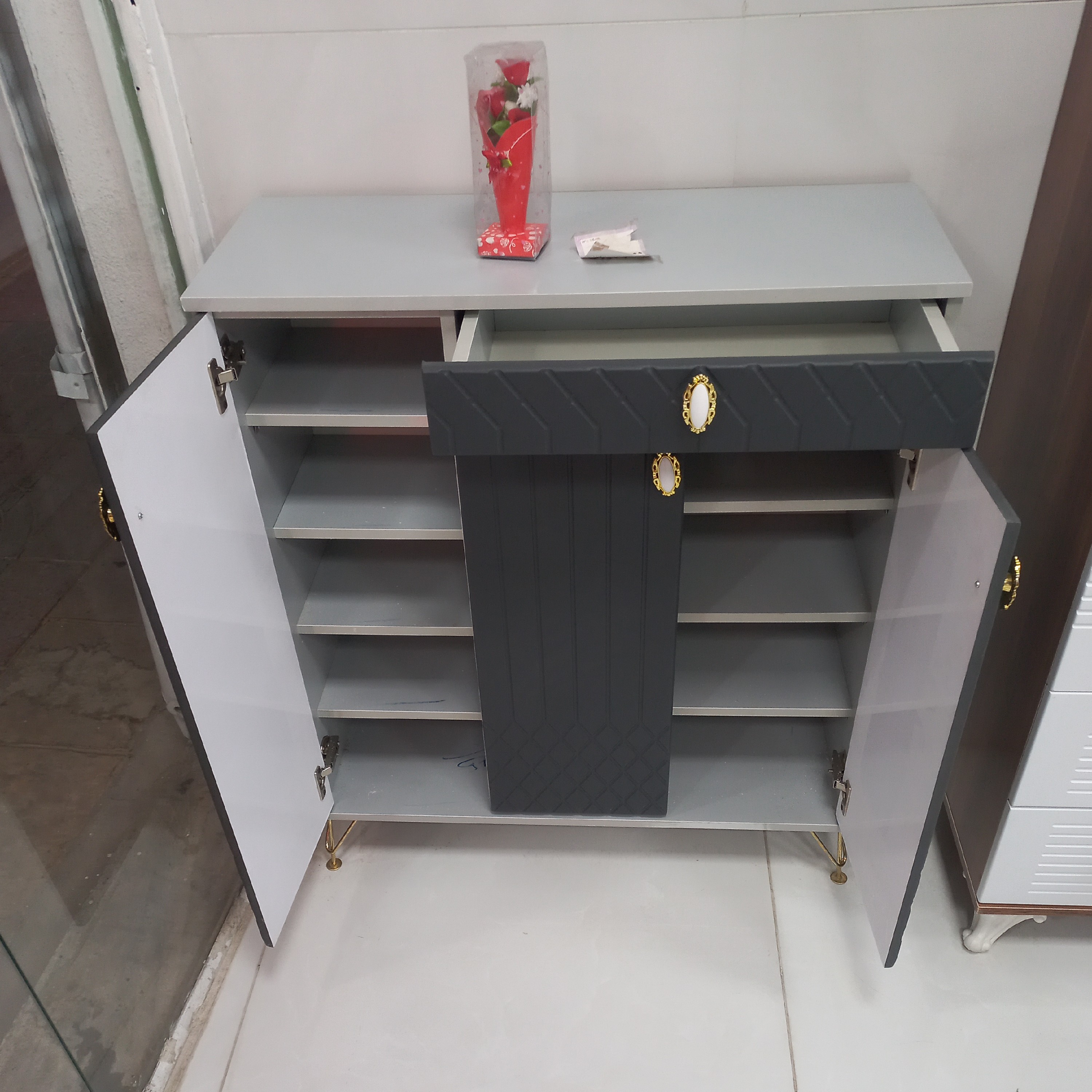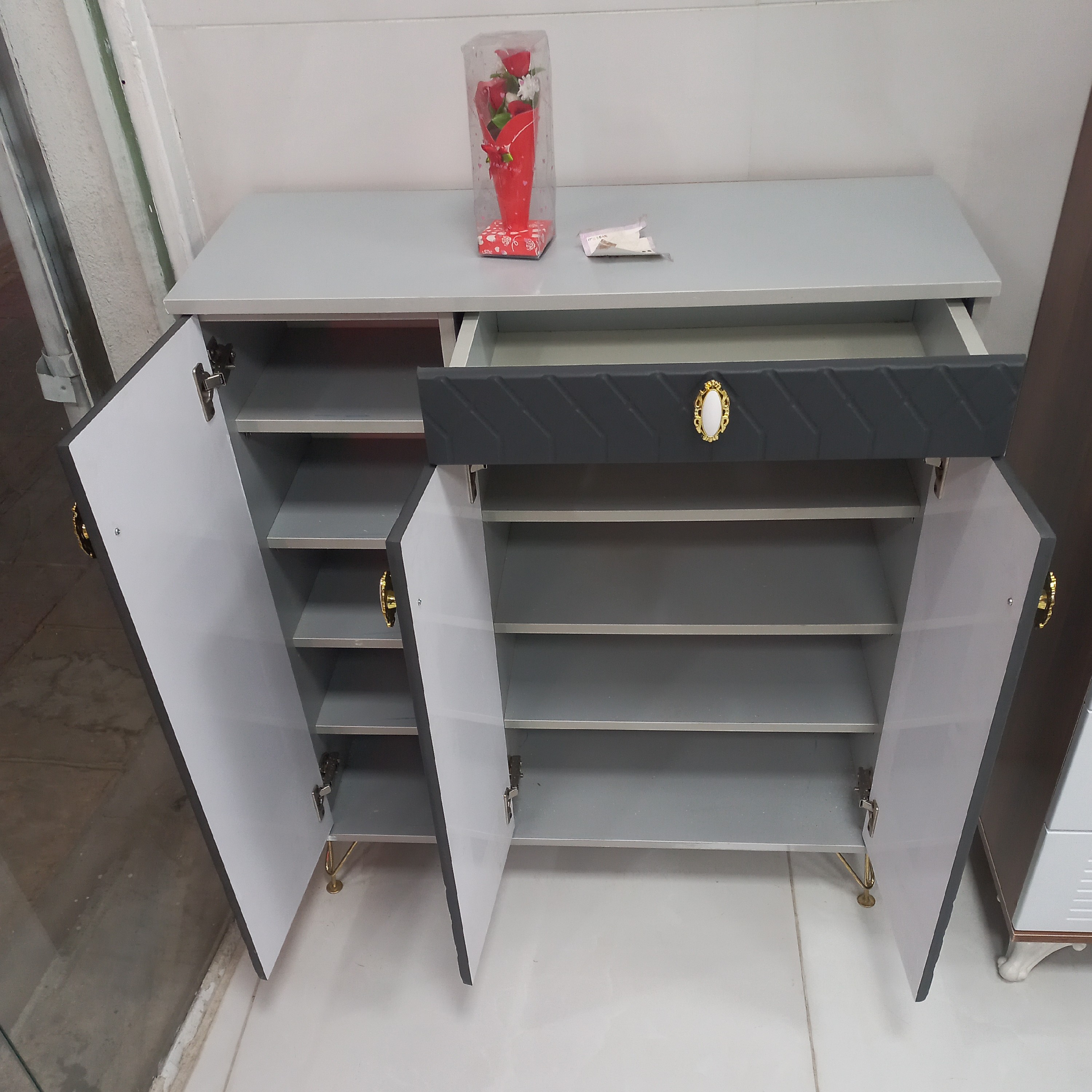 جاکفشی کمد کفش. جاکفشی پایه فلز ۳درب جنس ام دی اف درجه یک ارین سینا با روکش ممبران کره ای درجه یک