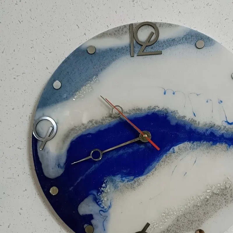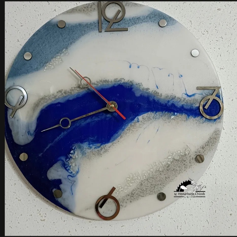 ساعت رزین با تزیین سنگ زینتی قطر ساعت ۴۰ سانتیمتر با موتور آرامگرد اعداد لاتین قابل تغییر در طرح و سایز ساعت