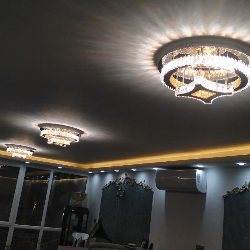 لوستر کریستالی مدرن با متریال باکیفیت وارداتی ورق استیل آینه ای با کیفیت نور فوق العاده بالا دارای 3 حالت نور دهی مجزا سفید،. آفتابی، ترکیبی همراه با ریموت درایور و قابلیت کنترل با اپلیکیشن موبایل
