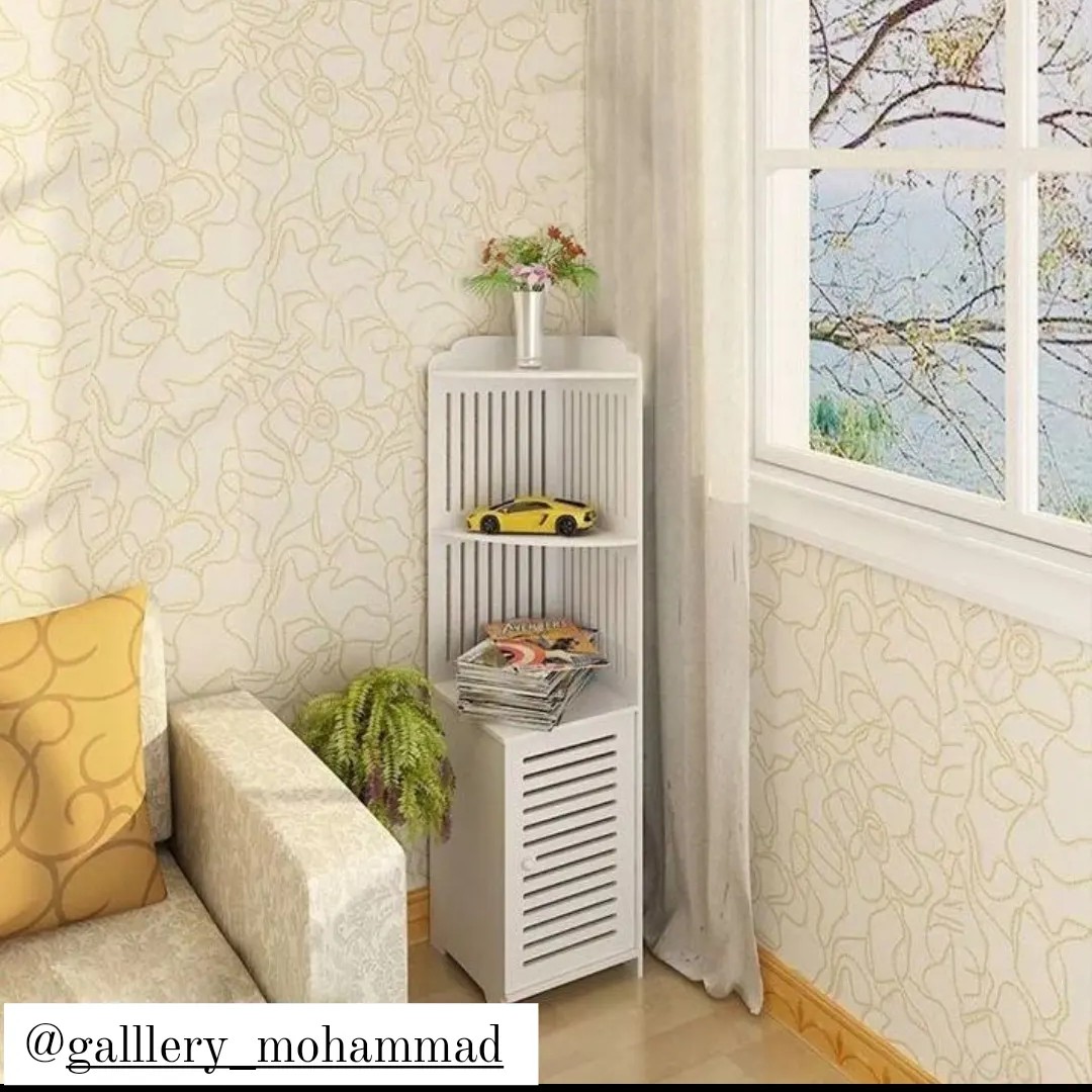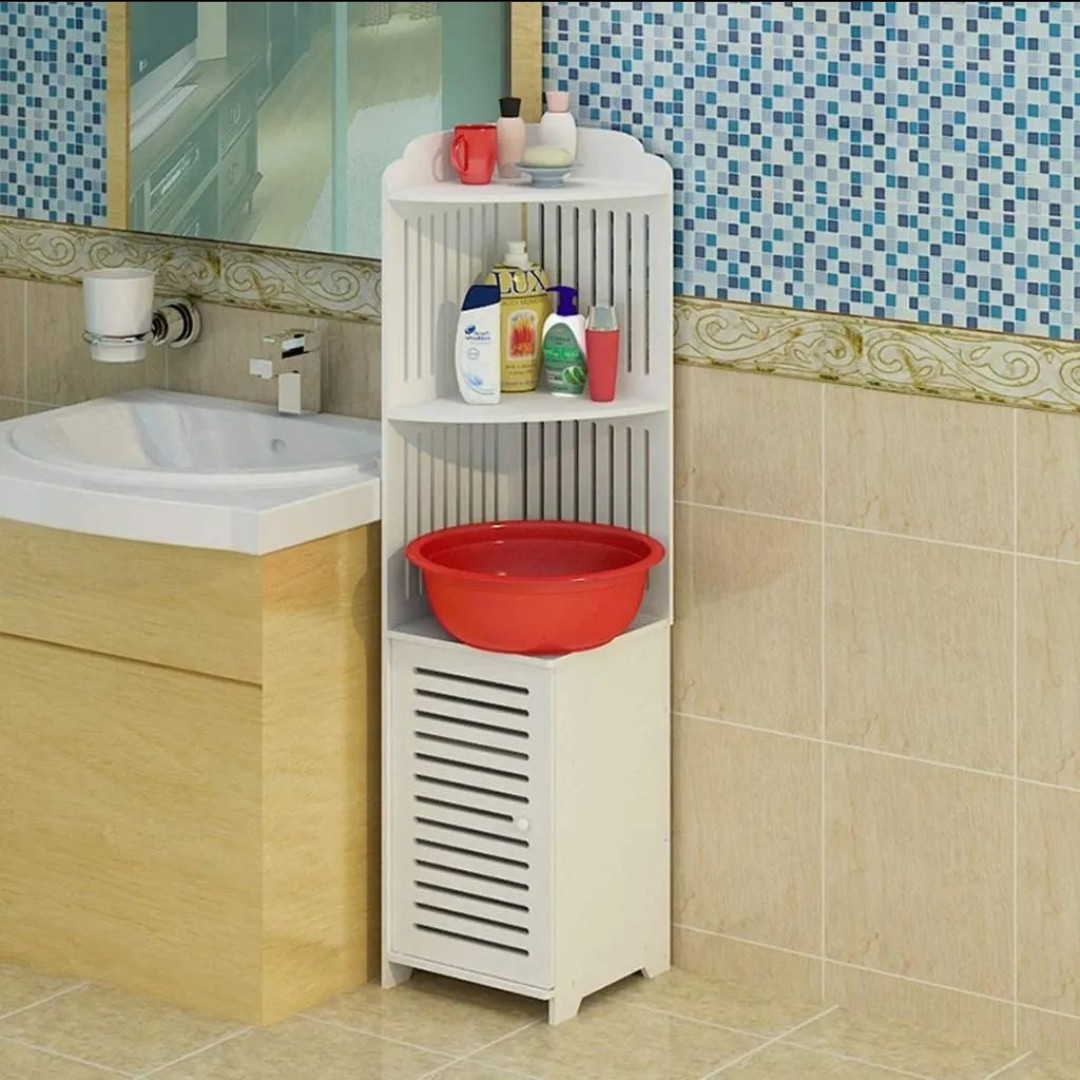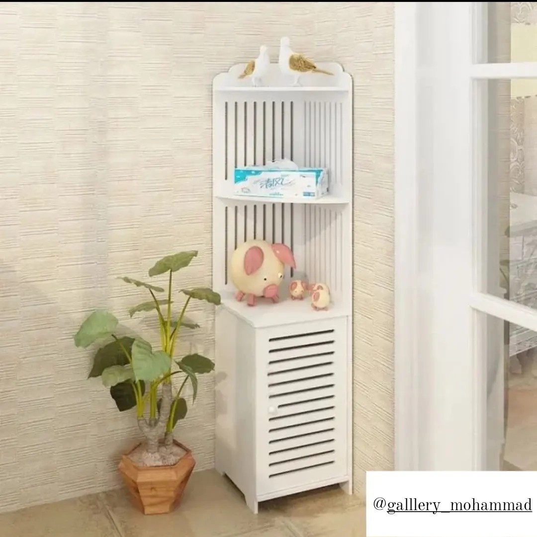 استند کنجی سایز بزرگ قد ۱۲۰ دارای یک درب و سه عدد طبقه مناسب برای لوازم حمام و توالت جای شامپو و لوازم بهداشتی کاملا ضد آب و رطوبت با قابلت نصب آسان
