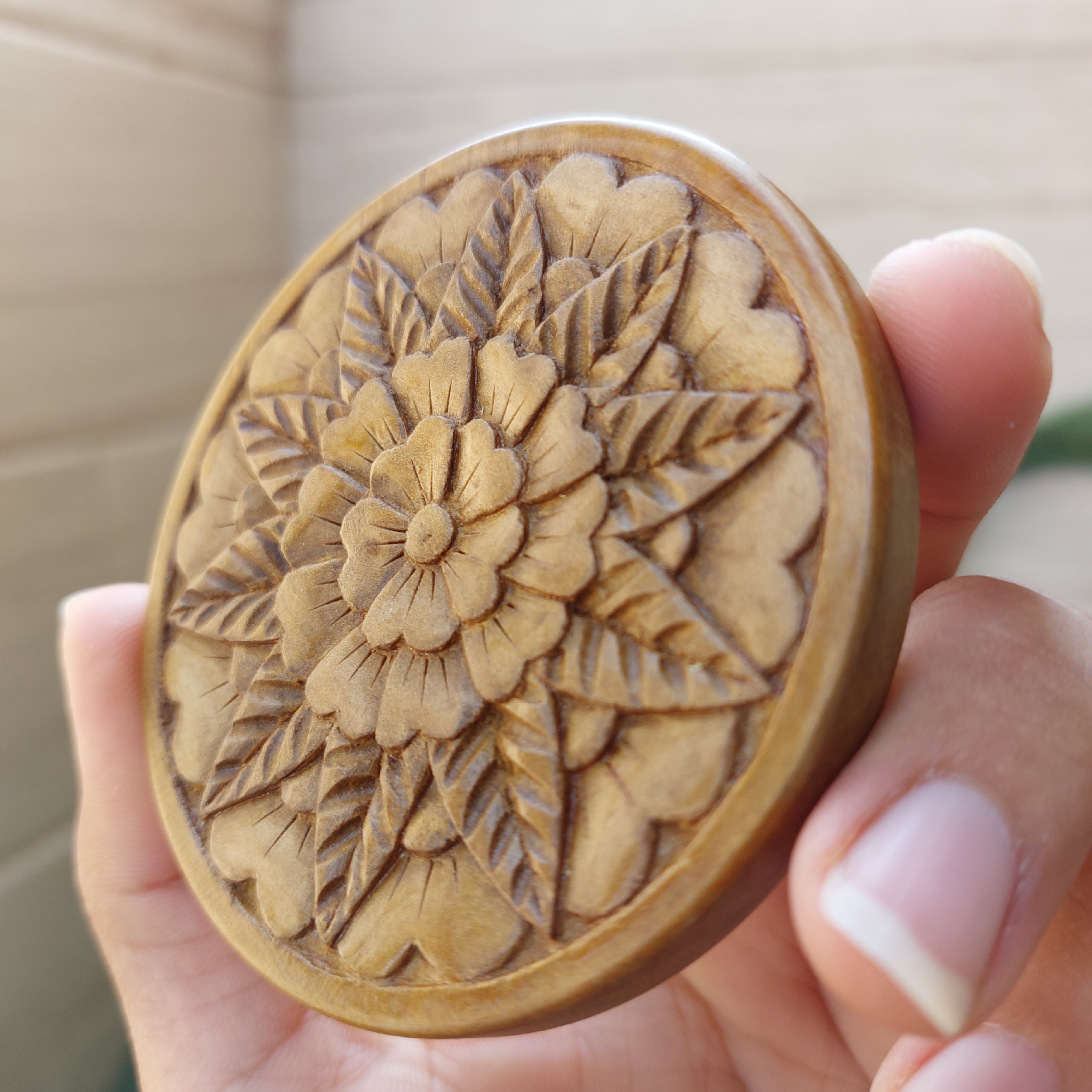 آینه تو کیفی منبت کاری شده طرح گل قلبی _ساخته شده از چوب گلابی