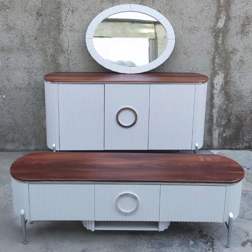 ست آینه کنسول و میز تی وی جنس ام دی اف پایه پلاستیک فشرده تک رنگ و دو رنگ با بهترین کیفیت رنگ بندی دارد