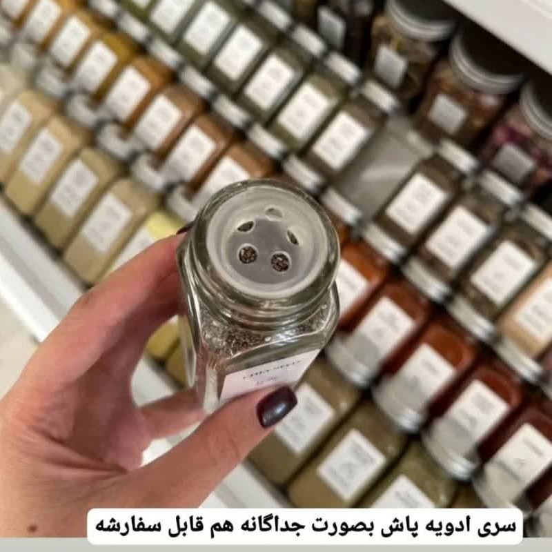 شیشه ادویه دونه ای 20 تومن تومن با برچسبش ضد آب وسر نمک پاشی دونه ای 4تومان 24 تومنتومان در میاد هر شیشه