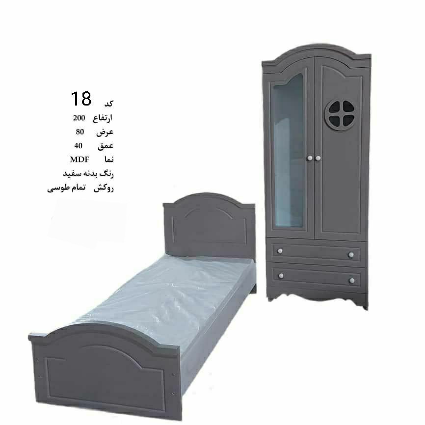 تخت نوجوان و کمد لباسی دو درب یک درب لباسی و یک درب ویترین با۳کشو لباسی ویک جاکفشی جنس ام دی اف درجه یک آرین سینا باروکش ممبران کره ای درجه یک.قبول هرنوع سفارش با هر رنگی طبق سلیقه مشتری