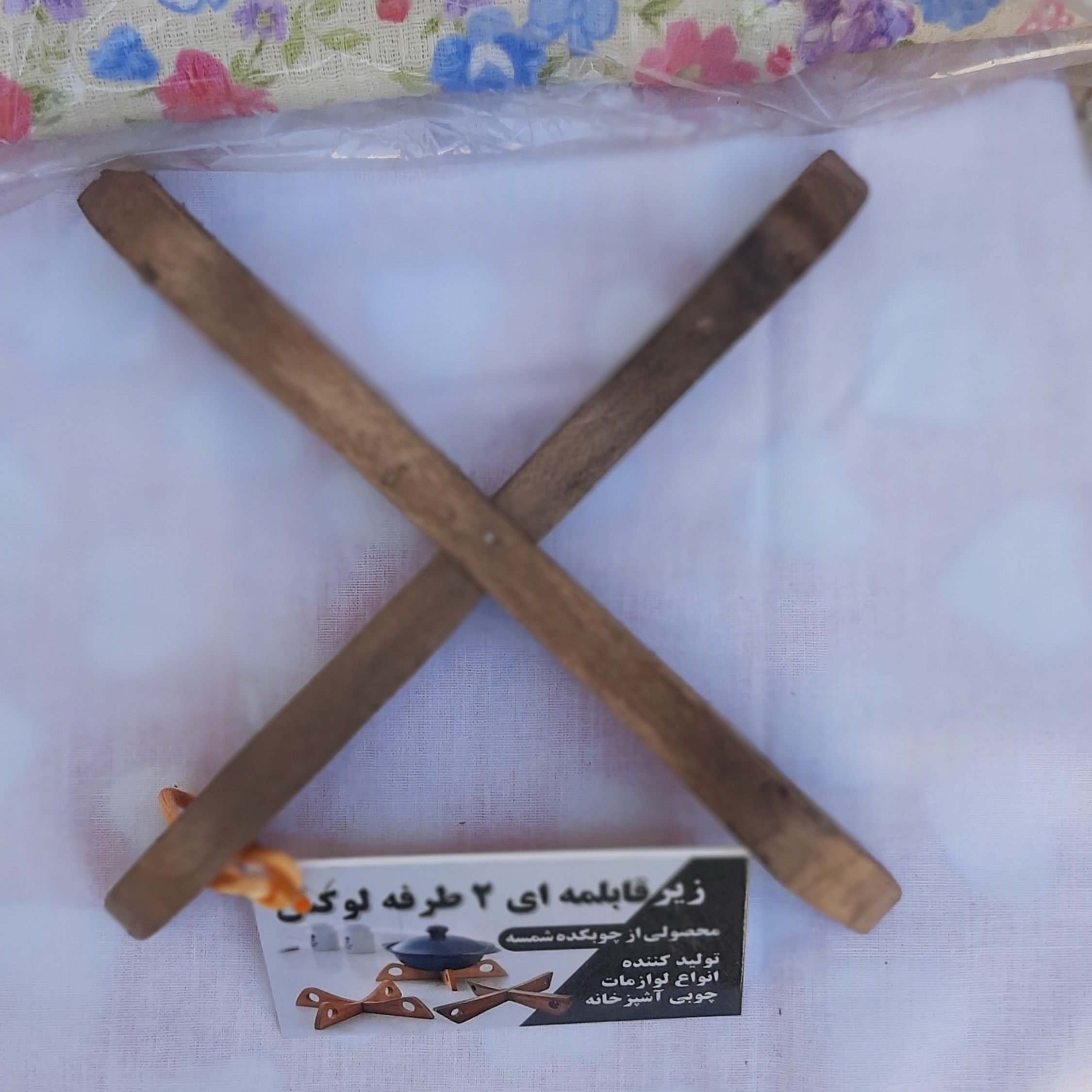 زیرقابلمه چوبی ۲طرفه یعنی از هرطرف این محصول میشه استفاده کنید یطرف بزرگ وطرف دیگری کوچکتر