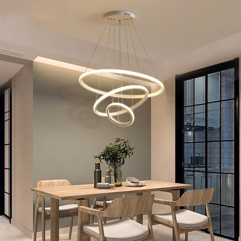 لوستر مدرن سه حلقه دارای نور هشت حالته دارای ریموت هوشمند و اپلیکیشن مبلمونسرا مدل 244391