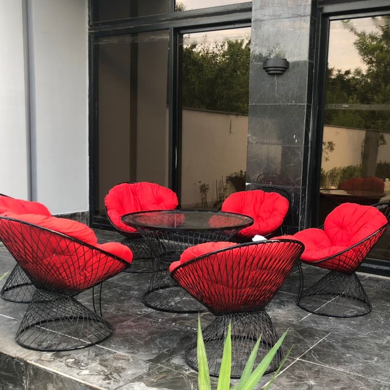 مبل باغی فلزی مدل بامبو از جنس فلز آهنی با رنگ کوره ای یا الکترواستاتیک و میز شیشهای است که از مدلهای بسیار شیک، زیبا و پرطرفدار محصولات ویلایی محسوب میشود. صندلیهای این ست، از تشکی با جنس پارچه و پر شده از ویسکوز تولید میشوند. رنگ بدنه این ست ویلایی کورهای الکترواستاتیک بوده و در دو رنگ سفید و مشکی عرضه میگردد. تشکهای مبل باغی فلزی مدل بامیو ، یک تکه بوده و در رنگهای تک رنگ زرد_قرمز_طوسی_بنفش و طرح دار گلدار صورتی_آبی جنگلی_سبزجنگلی_موجی_طـوبی دوخته و ارائه میگردد. قطر میز این مدل قابل سفارش در اندازه 100 سانتیمتر میباشد.