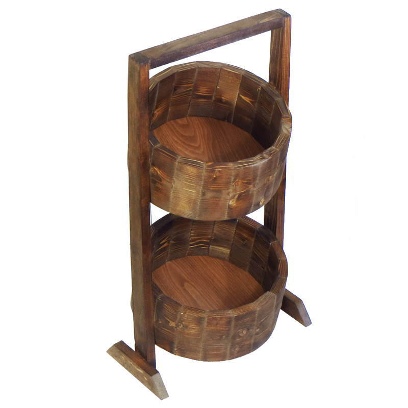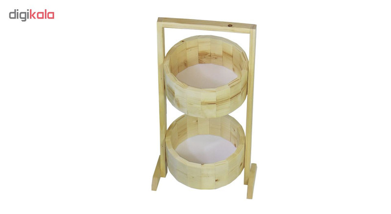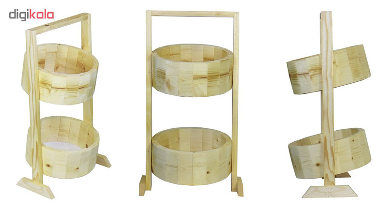 سبد سیب زمینی و پیاز مدل خورشید ساخته شده از چوب اصل و با کیفیت روسی و با طراحی بسیار زیبا و شیک مناسب سلیقه های سخت پسند در دکوراسیون آشپزخانه است. تمامی مراحل ساخت این محصول از انتخاب متریال، برش، ساب، عمل آوری، تراز، رنگ آمیزی و کنترل با دقت بسیار و حساسیت بالا انجام گرفته است. چوبها در ابتدا در اندازه های مشخص شده برش خورده و با دقت سمباده کاری می شوند تا مشتریان در هنگام استفاده علاوه بر لذت لمس چوب از آسیب به های چوب در امان باشند. انتخاب رنگ و انجام عملیات رنگ آمیزی قطعات به نحوه است که طرح های زیبای درون الوارها به خودی خود بر زیبایی سبد افزوده است. سبدها در دو طبقه و به صورت ثابت با شیب ملایم تعبیه شده است. در کف طبقات از تخته های با کیفیت و مقاوم که در اثر مرور زمان و استفاه تغییری در آنها به وجود نمی آید استفاده شده است. عمق هر طبقه به نحوی است که با سایر ابعاد طبقه هارمونی دارد. دسته به نحوه ای قرار گرفته است که سبد به راحتی قابل جا به جایی بوده و علاوه بر استحکام مانع استفاده از طبقه فوقانی نمی گردد. تکیه گاه پایه ها با اندازه مناسب باعث تثبیت سبد شده و مانع از افتادن و واژگونی سبد می گردد. برند وست وود سازنده لوازم چوبی با تیم طراحی بسیار حرفه ای در نظر دارد به عن اولین برند بین المللی کشور در سطح منطقه محصولاتی را ارائه دهد که در آنها نوآوری و خلاقیت در کنار زیبایی و هارمونی به کار رفته باشد.