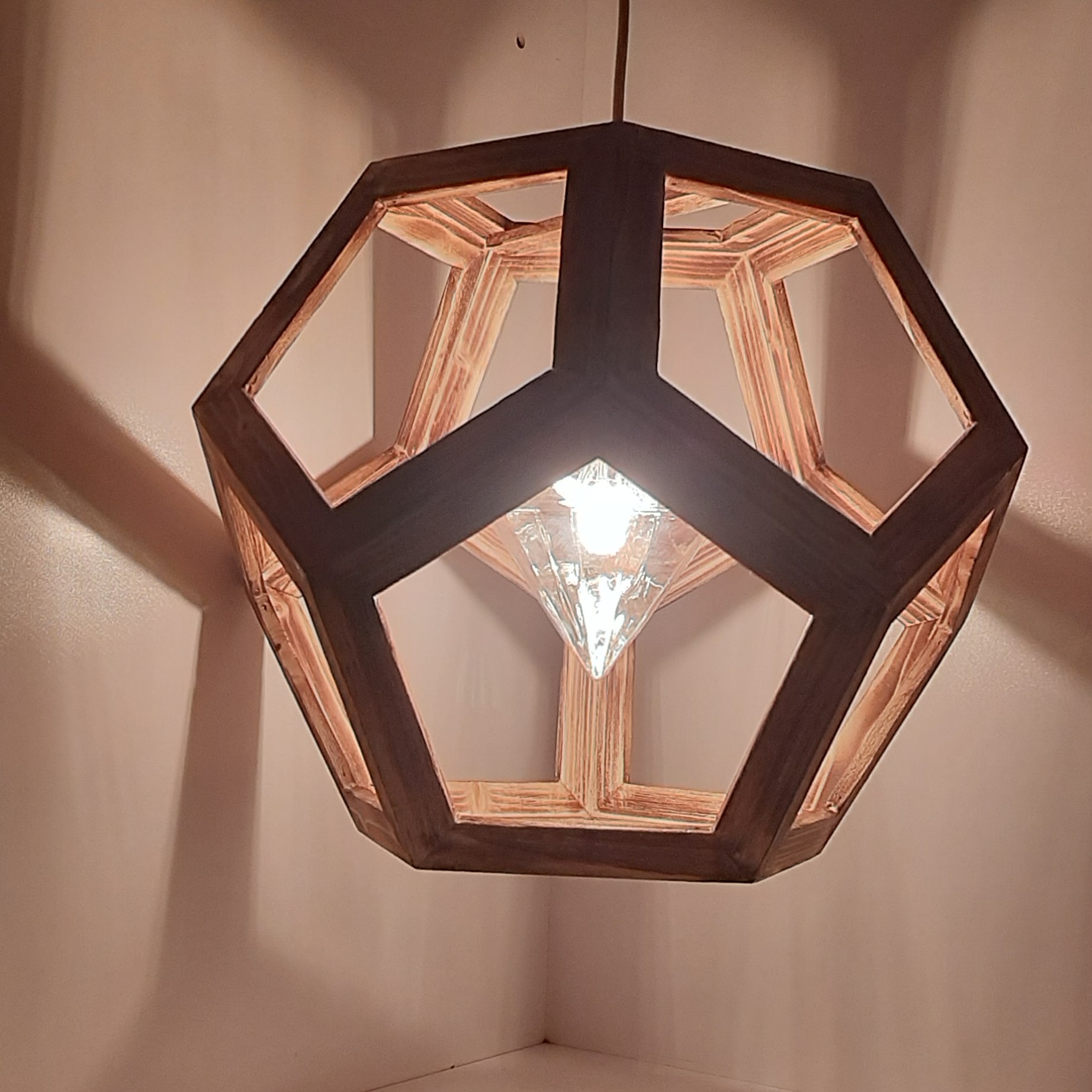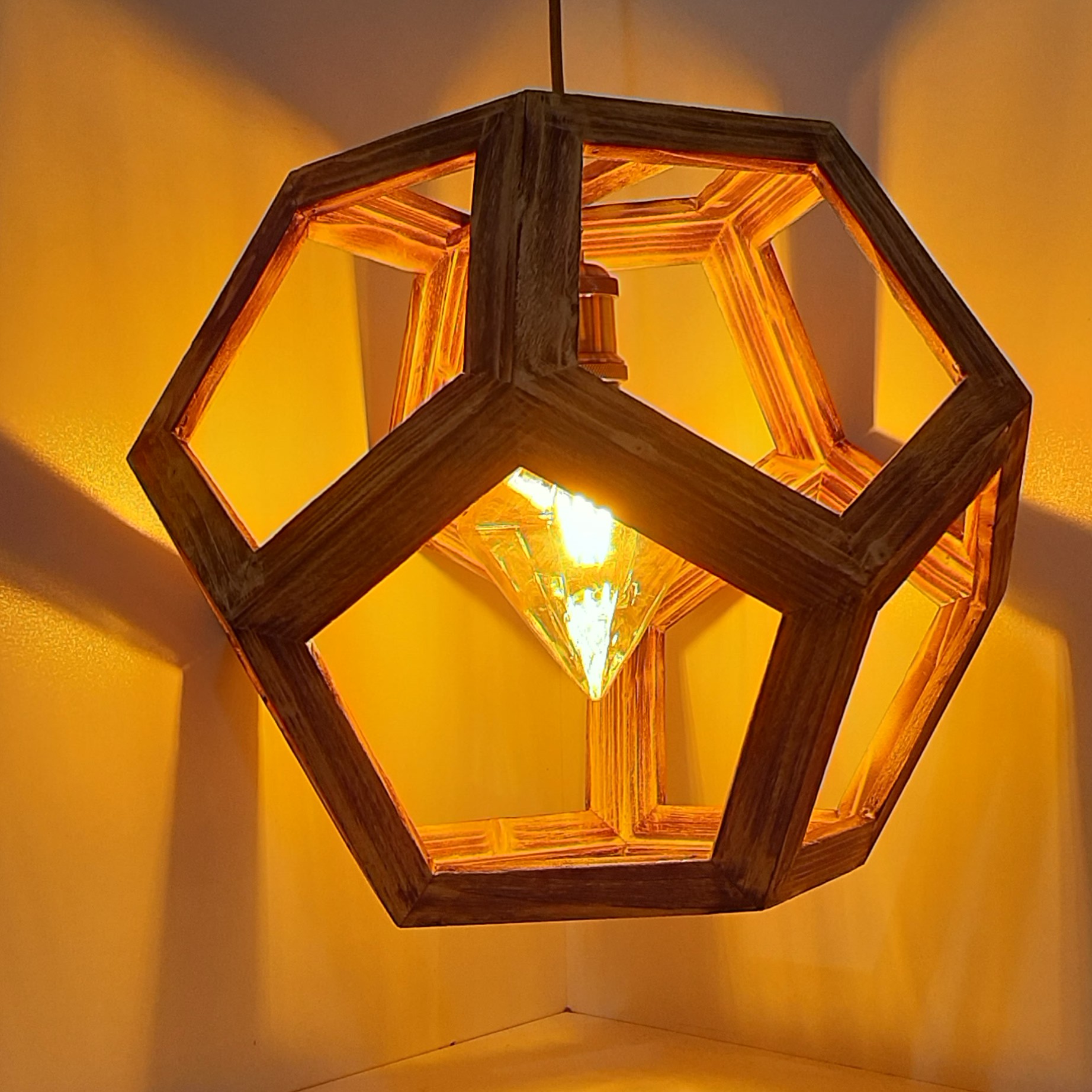 لوستر چوبی گسترده پنج ظلعی چوب روس سنبلاست شده پوشش سیلر کیلر جلا خورده توجه: محصول فاقد لامپ میباشد