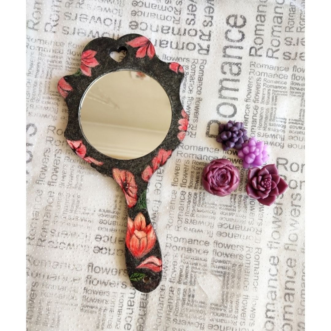 آینه دستی چوبی مدل فانتزی ارتفاع 27 سانت عرض 17 سانت هدیه ایی بسیار شکیل و زیبا