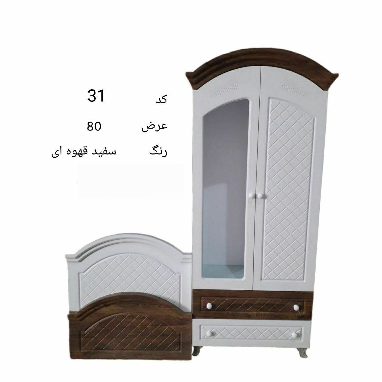 تخت نوزادنوجوان جوان تخت نوجوان وکمدلباسی یک درب یک درب لباسی ویک درب ویترین با2کشولباسی جنسmdfدرجه یک باروکش ممبران کره مبلمونسرا مدل 228514