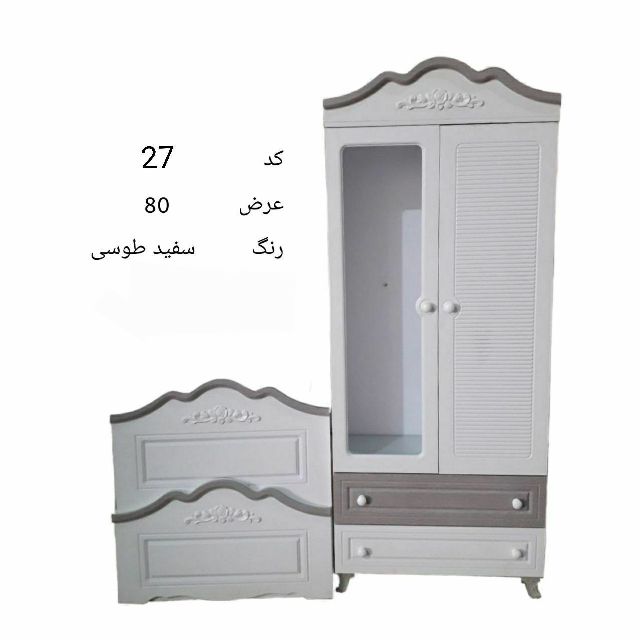 تخت نوزاد و نوجوان و جوان تخت نوجوان و کمد لباسی یک درب یک درب لباسی و یک درب ویترین با دوکشو لباسی جنس ام دی اف درجه یک آرین سینا باروکش ممبران کره ای درجه یک.قبول هرنوع سفارش با هر رنگی طبق سلیقه مشتری