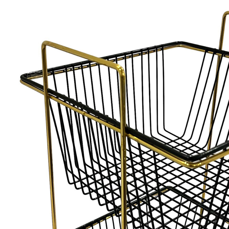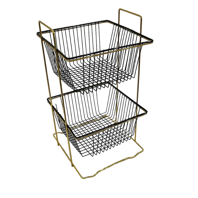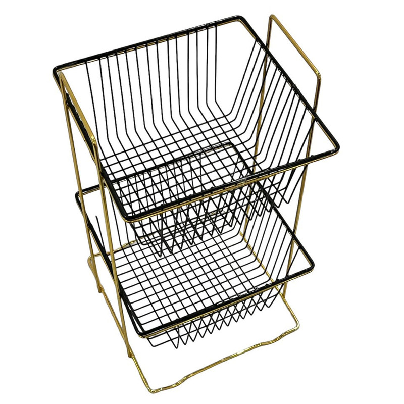 این نوع سبد از مفتول بسیار با کیفیت و محکم و سنگین و ضد زنگ که با ترکیب دو رنگ مشکی و طلایی نمای بسیار شیک به آشپزخانه شما میدهد دارای دو طبقه میباشد