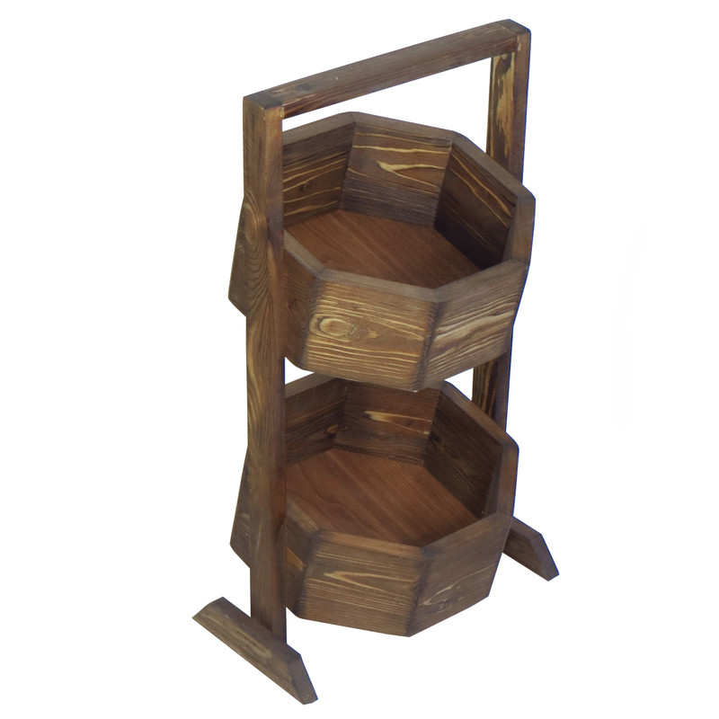 سبد سیب زمینی و پیاز کندو ساخته شده از چوب اصل و با کیفیت روسی و با طراحی بسیار زیبا و شیک مناسب سلیقه های سخت پسند در دکوراسیون آشپزخانه است. تمامی مراحل ساخت این محصول از انتخاب متریال، برش، ساب، عمل آوری، تراز، رنگ آمیزی و کنترل با دقت بسیار و حساسیت بالا انجام گرفته است. چوبها در ابتدا در اندازه های مشخص شده برش خورده و با دقت سمباده کاری می شوند تا مشتریان در هنگام استفاده علاوه بر لذت لمس چوب از آسیب به های چوب در امان باشند. انتخاب رنگ و انجام عملیات رنگ آمیزی قطعات به نحوه است که طرح های زیبای درون الوارها آشکارتر شده و به خودی خود بر زیبایی سبد بیافزاید. سبدها در دو طبقه و به صورت ثابت با شیب ملایم تعبیه شده است. در کف طبقات از تخته های با کیفیت و مقاوم که در اثر مرور زمان و استفاه تغییری در آنها به وجود نمی آید استفاده شده است. عمق هر طبقه به نحوی است که با سایر ابعاد طبقه هارمونی دارد و دسته آن به نحوه است که سبد به راحتی قابل جا به جایی بوده و علاوه بر استحکام مانع استفاده از طبقه فوقانی نمی گردد. تکیه گاه پایه ها با اندازه مناسب باعث تثبیت سبد شده و مانع از افتادن و واژگونی آن می گردد. برند وست وود سازنده لوازم چوبی با تیم طراحی بسیار حرفه ای در نظر دارد به عن اولین برند بین المللی کشور در سطح منطقه محصولاتی را ارائه دهد که در آنها نوآوری و خلاقیت در کنار زیبایی و هارمونی به کار رفته باشد.