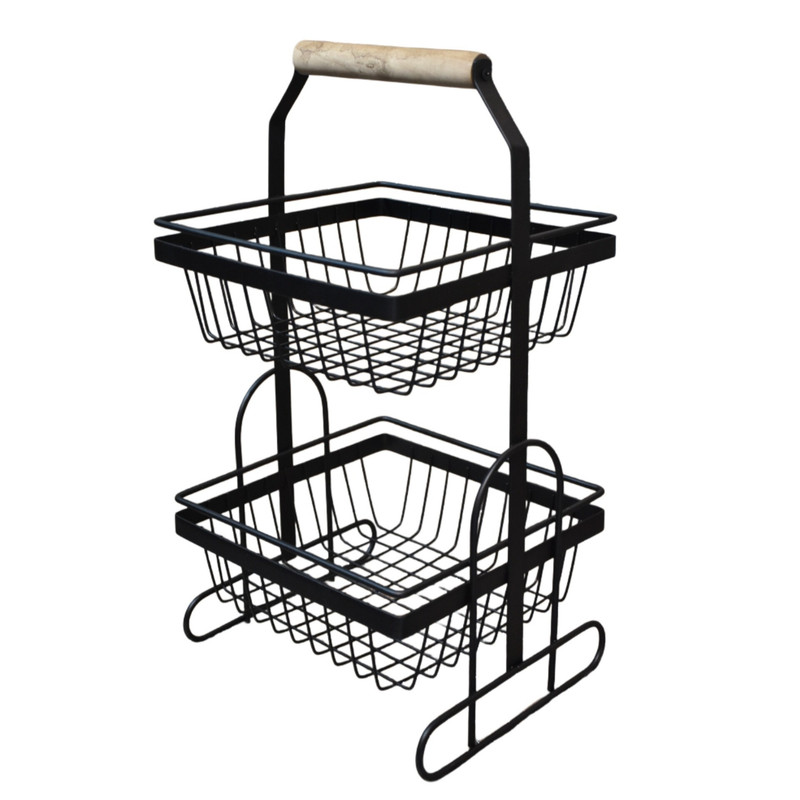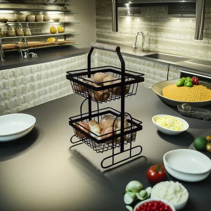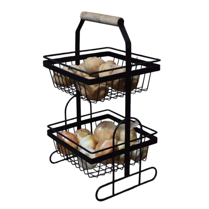 سبد سیبزمینی و پیاز مفتولی مدل نشان نهتنها برای نگهداری سیبزمینی و پیاز مناسب است بلکه فضای آشپزخانه شما را زیبا خواهد کرد. این سبد 3 طبقه مربع دارای پایهای فلزی بوده و سه سبد فلزی دارد که بهواسطه لبه سبد روی پایه قرار میگیرد. ارتفاع کلی 65 سانتیمتر است و هر کدام از سبدها دارای ابعاد 25 × 25 سانتیمتر هستند. برای خادههایی که حجم متوسط سیبزمینی و پیاز را خریداری میکنند این سبد سه طبقه قطعا بسیار مناسب خواهد بود. بهدلیل اینکه هوای کافی در این سبد در جریان است، فرآیند فاسد شدن موادغذایی دیرتر صورت میگیرد. در کنار کاربردی بودن این محصول، بهدلیل طراحی زیبایی که دارد باعث ایجاد جلوهای خاص در آشپزخانه خواهد شد.