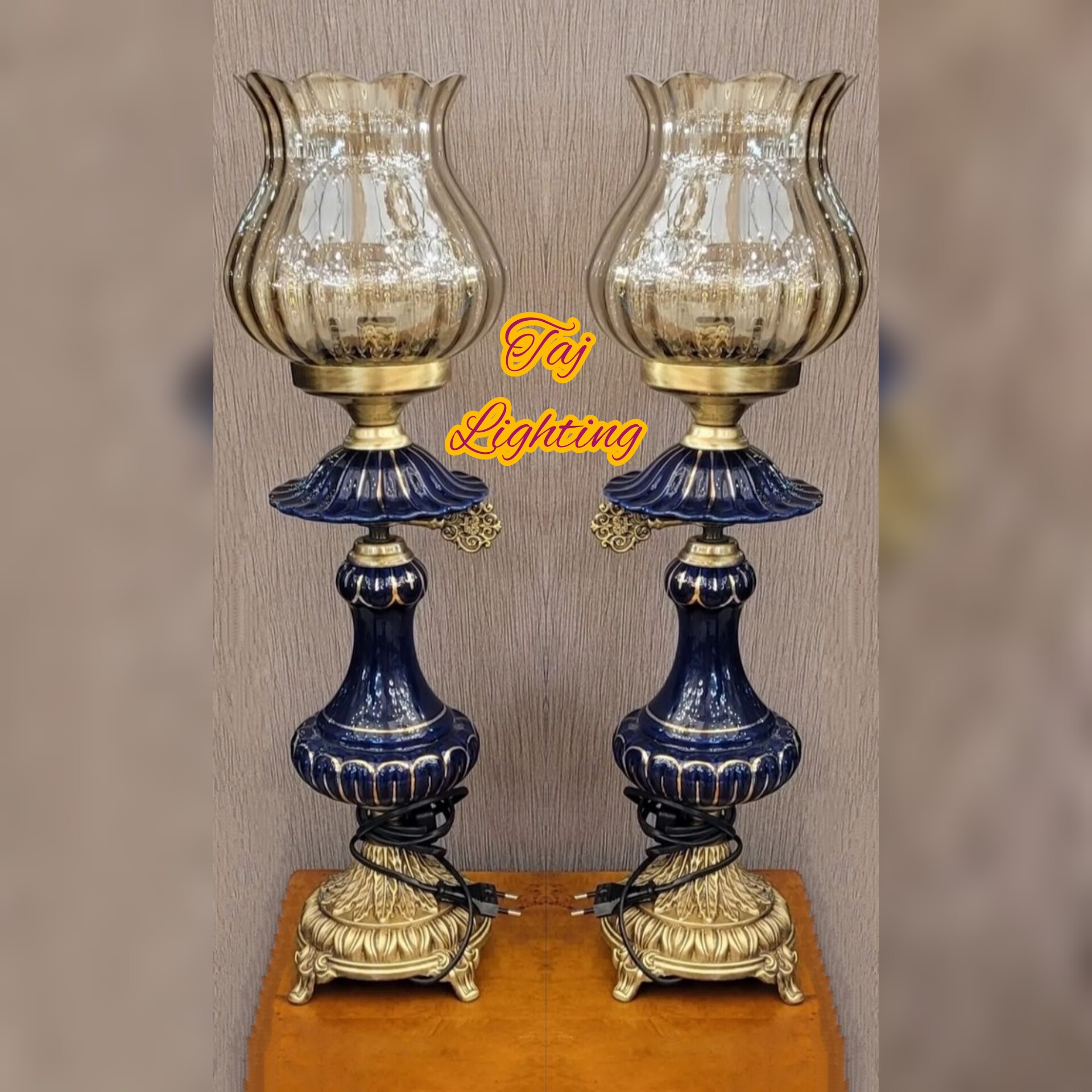 💥قیمت درج شده ، قیمت هر عدد چراغ می باشد جنس وسط تنه : سرامیک رنگ بندی : زرشکی ،سفید ، سورمه ای ، سبز ، فیروزه ای جنس لاله بلور رنگ لاله شامپاینی پایه آلیاژی با آبکاری آنتیک