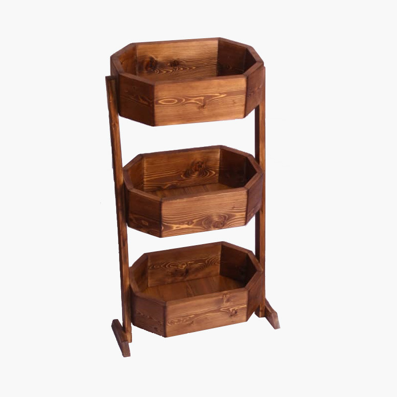 سبد سیب زمینی و پیاز مدل یاقوت 3 طبقه ساخته شده از چوب اصل و با کیفیت روسی و با طراحی بسیار زیبا و شیک مناسب سلیقه های سخت پسند در دکوراسیون آشپزخانه است. تمامی مراحل ساخت این محصول از انتخاب متریال، برش، ساب، عمل آوری، تراز، رنگ آمیزی و کنترل با دقت بسیار و حساسیت بالا انجام گرفته است. چوبها در ابتدا در اندازه های مشخص شده برش خورده و با دقت سمباده کاری می شوند تا مشتریان در هنگام استفاده علاوه بر لذت لمس چوب از آسیب به های چوب در امان باشند. انتخاب رنگ و انجام عملیات رنگ آمیزی قطعات به نحوه است که طرح های زیبای درون الوارها به خودی خود بر زیبایی سبد افزوده است. سبدها در سه طبقه و به صورت ثابت با شیب ملایم تعبیه شده است. در کف طبقات از تخته های با کیفیت و مقاوم که در اثر مرور زمان و استفاه تغییری در آنها به وجود نمی آید استفاده شده است. عمق هر طبقه به نحوی است که با سایر ابعاد طبقه هارمونی دارد. دسته به نحوه ای قرار گرفته است که سبد به راحتی قابل جا به جایی بوده و علاوه بر استحکام مانع استفاده از طبقه فوقانی نمی گردد. تکیه گاه پایه ها با اندازه مناسب باعث تثبیت سبد شده و مانع از افتادن و واژگونی سبد می گردد.