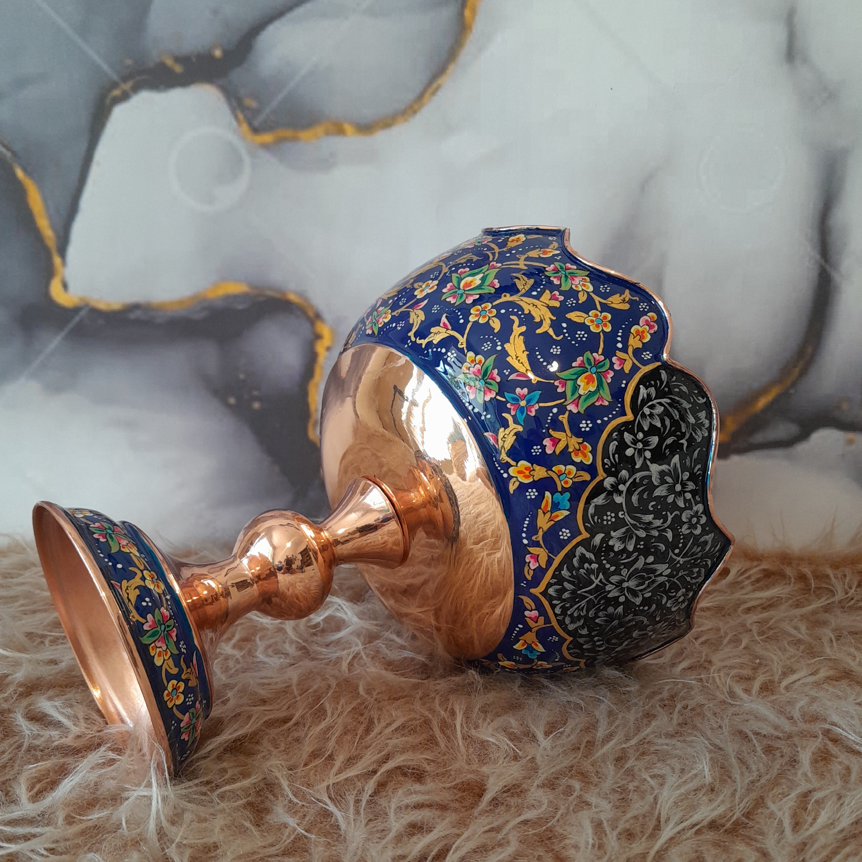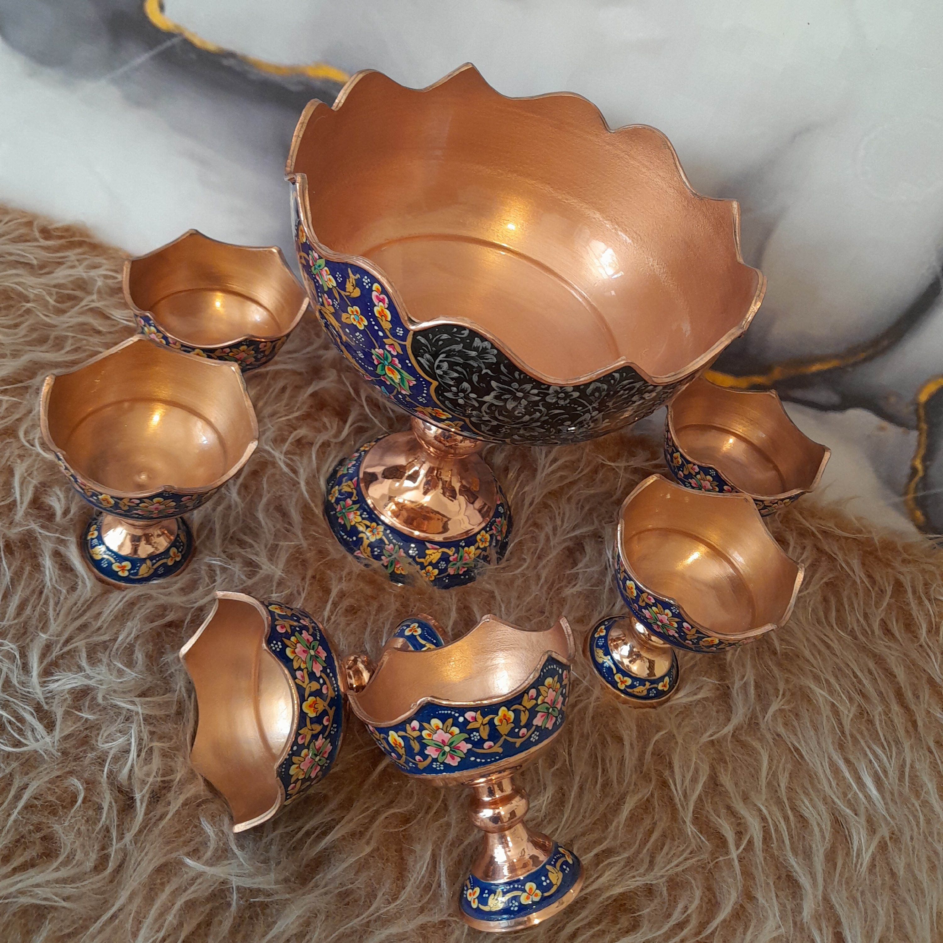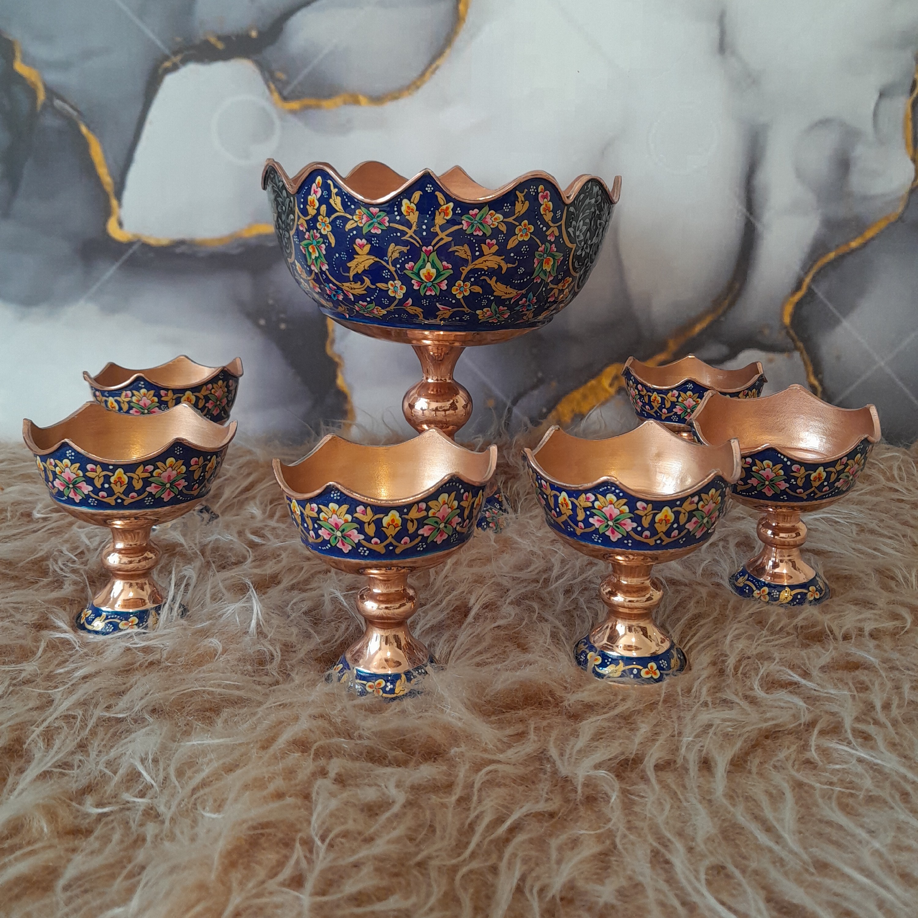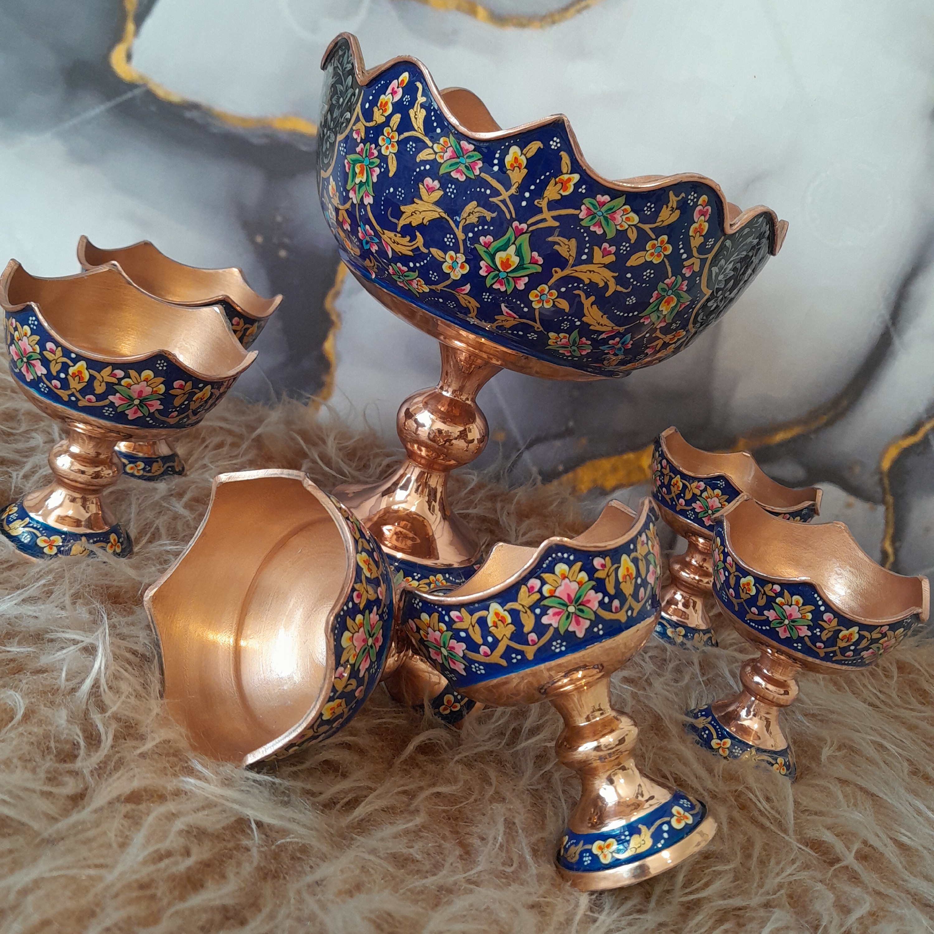 سرویس آجیل خوری مسی با نقاشی با کیفیت و پوشش سه لایه پلی استر ک مانع از تغیر رنگ محصول میشه .کاربردی و قابل شستشو . فقط دوراز نور مستقیم خورشید و مواد اسیدی باشه