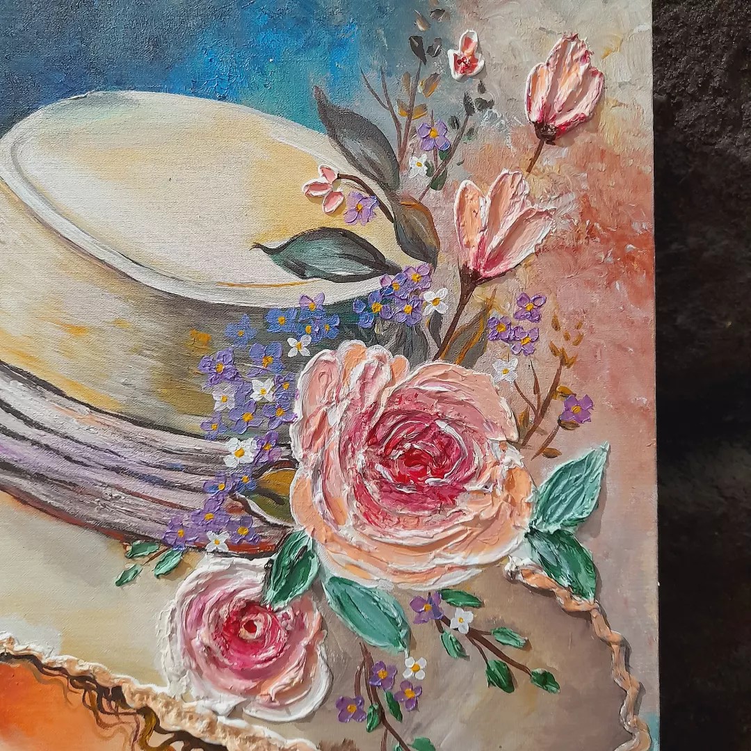 تابلو نقاشی رنگ اکریلیک و خمیر تکسچر روی بوم 50در 70 مبلمونسرا مدل 267454