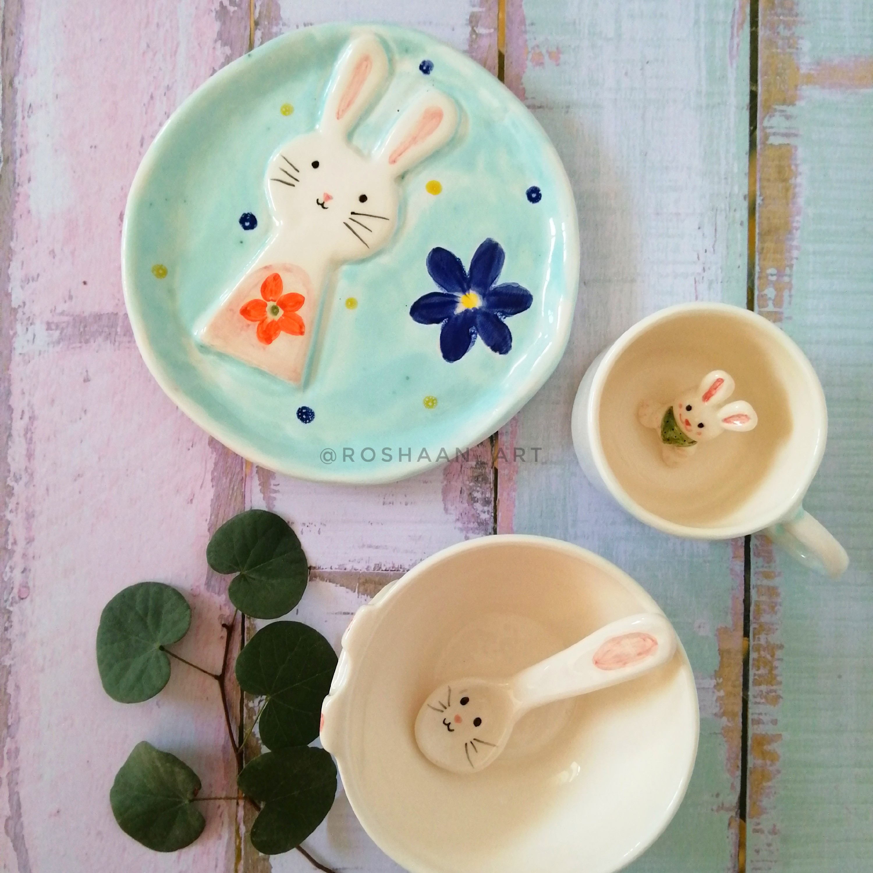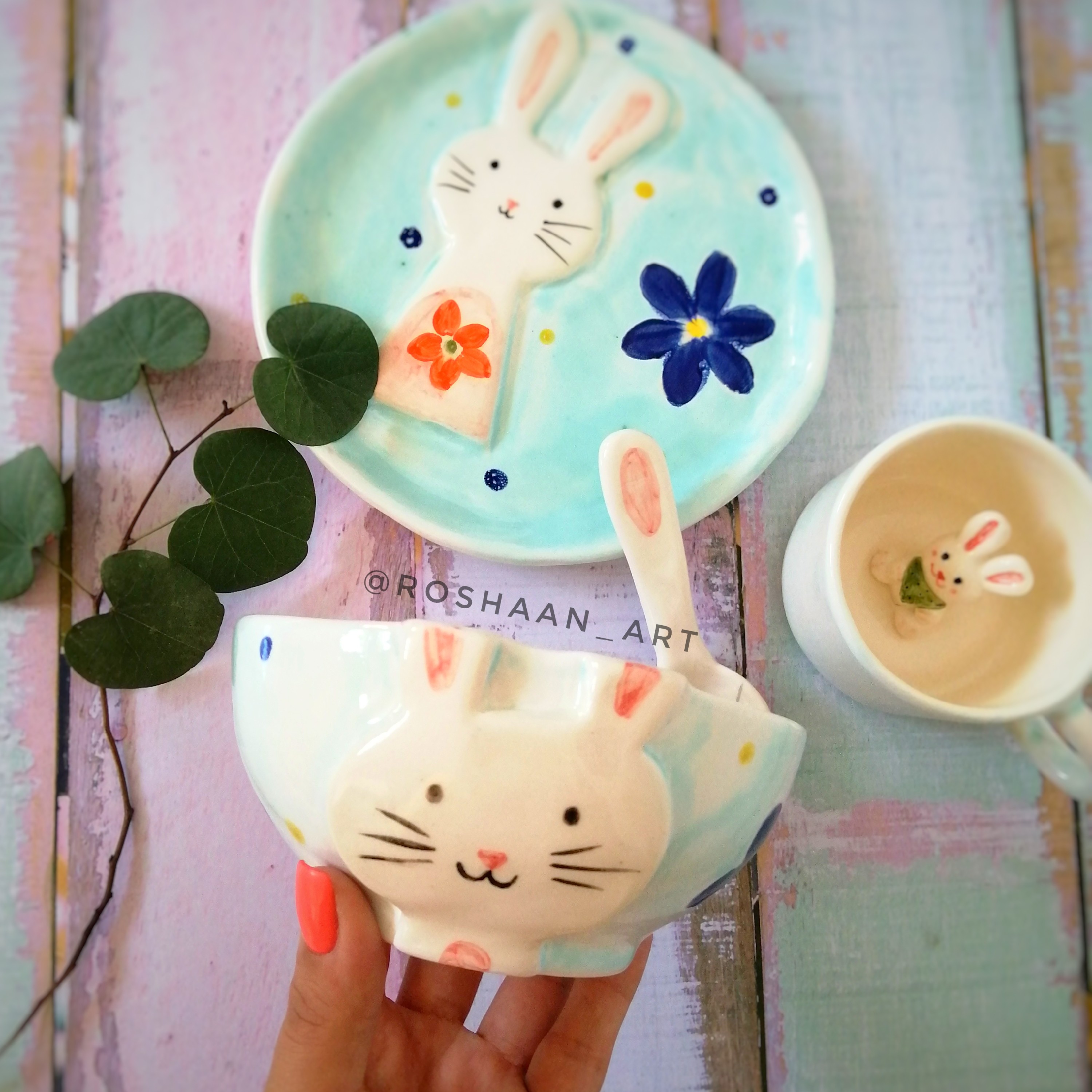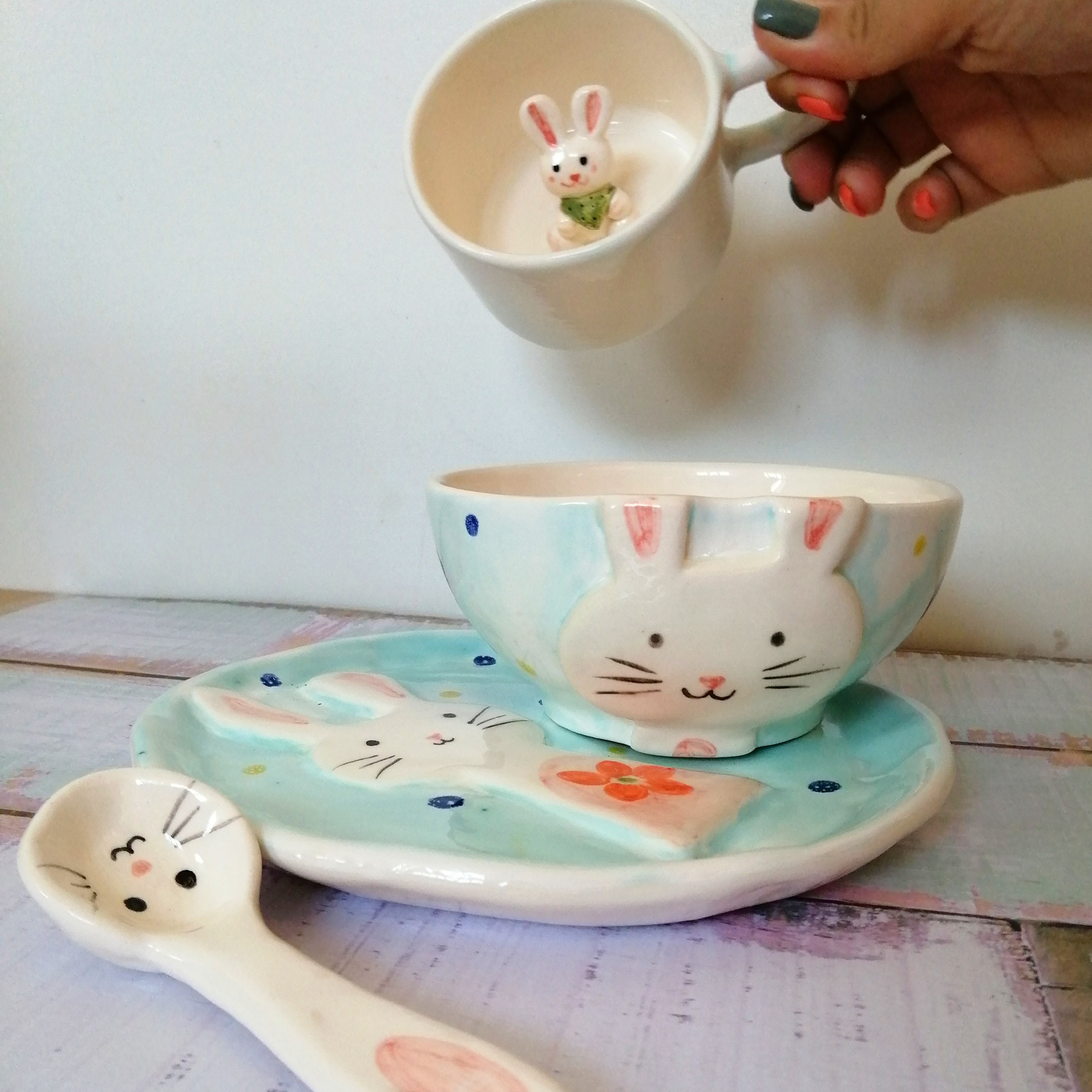 غذاخوری کودک سرویس غذاخوری ست دونفره میوه خوری سوپخوری سرامیکی دستساز مبلمونسرا مدل 288309