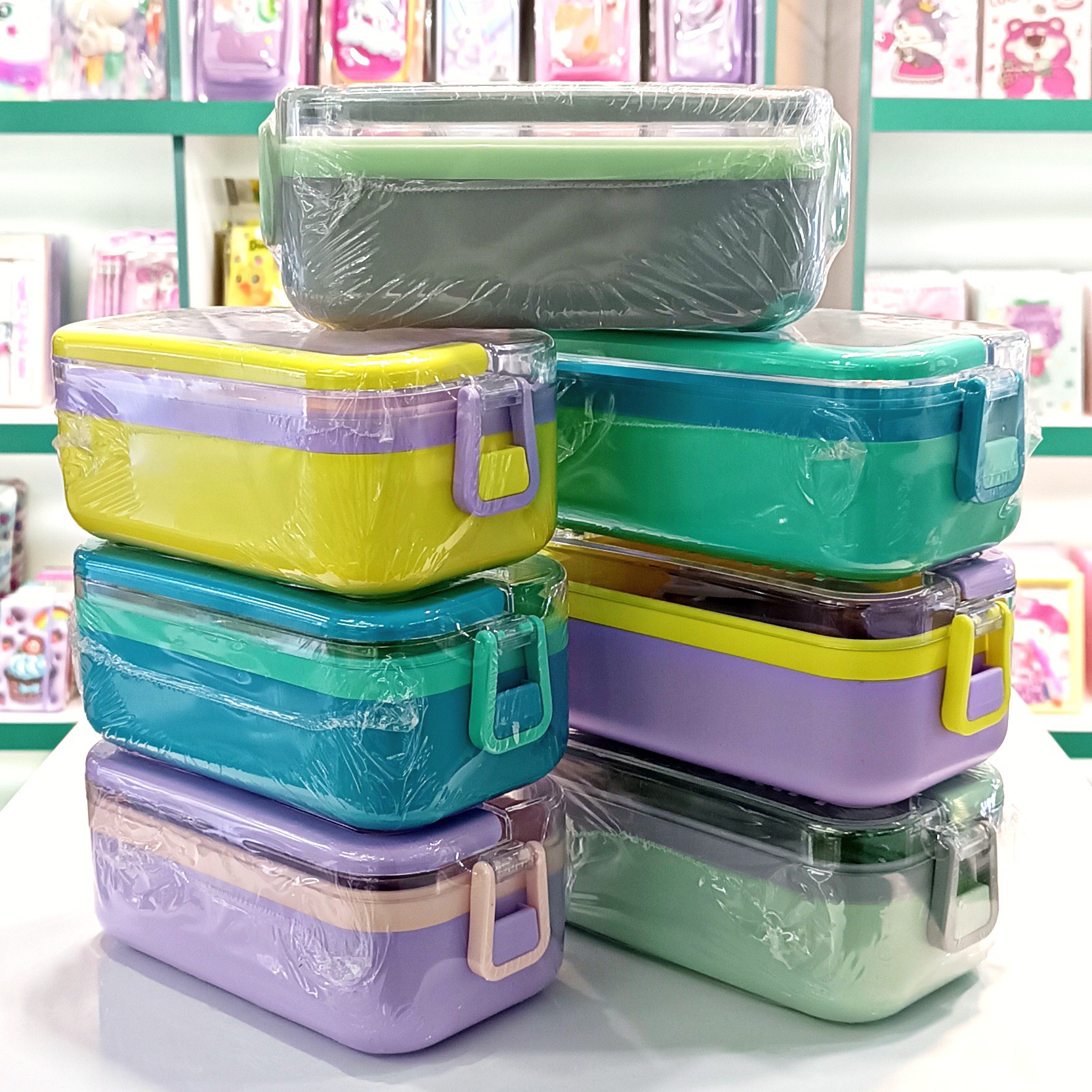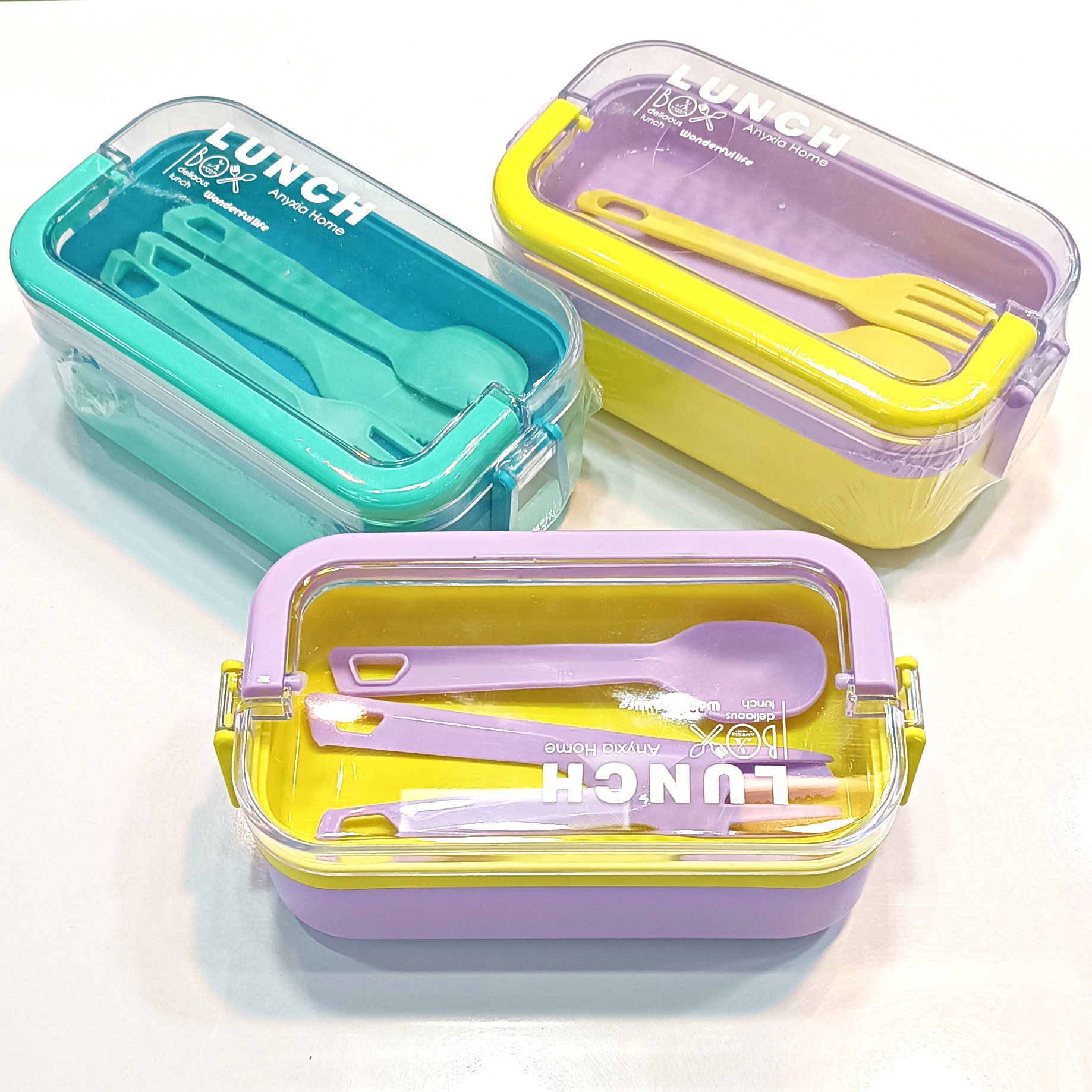 ظرف غذا دسته دار همراه با قاشق و چنگال و چاقو در رنگهای متنوع و جذاب و دوست داشتنی برای سلیقه های مختلف و قابل استفاده در مکانهای مختلف 🤗با کلبه شادی همیشه بدرخشید 🤗