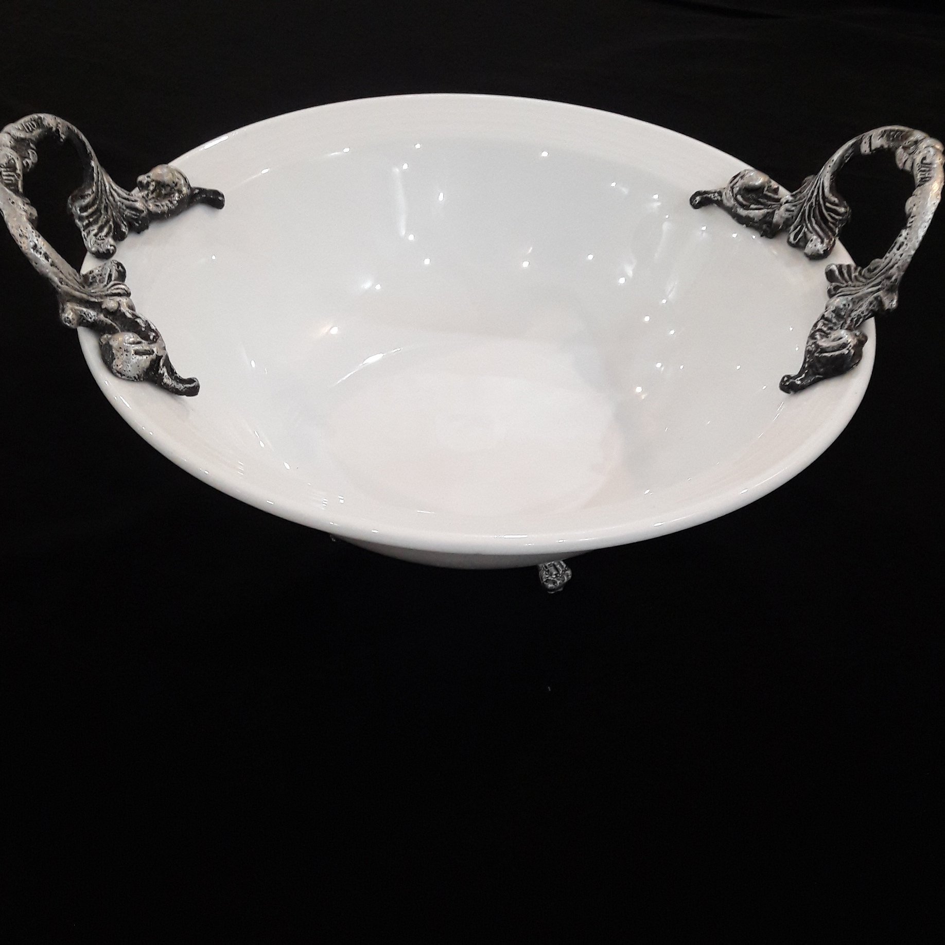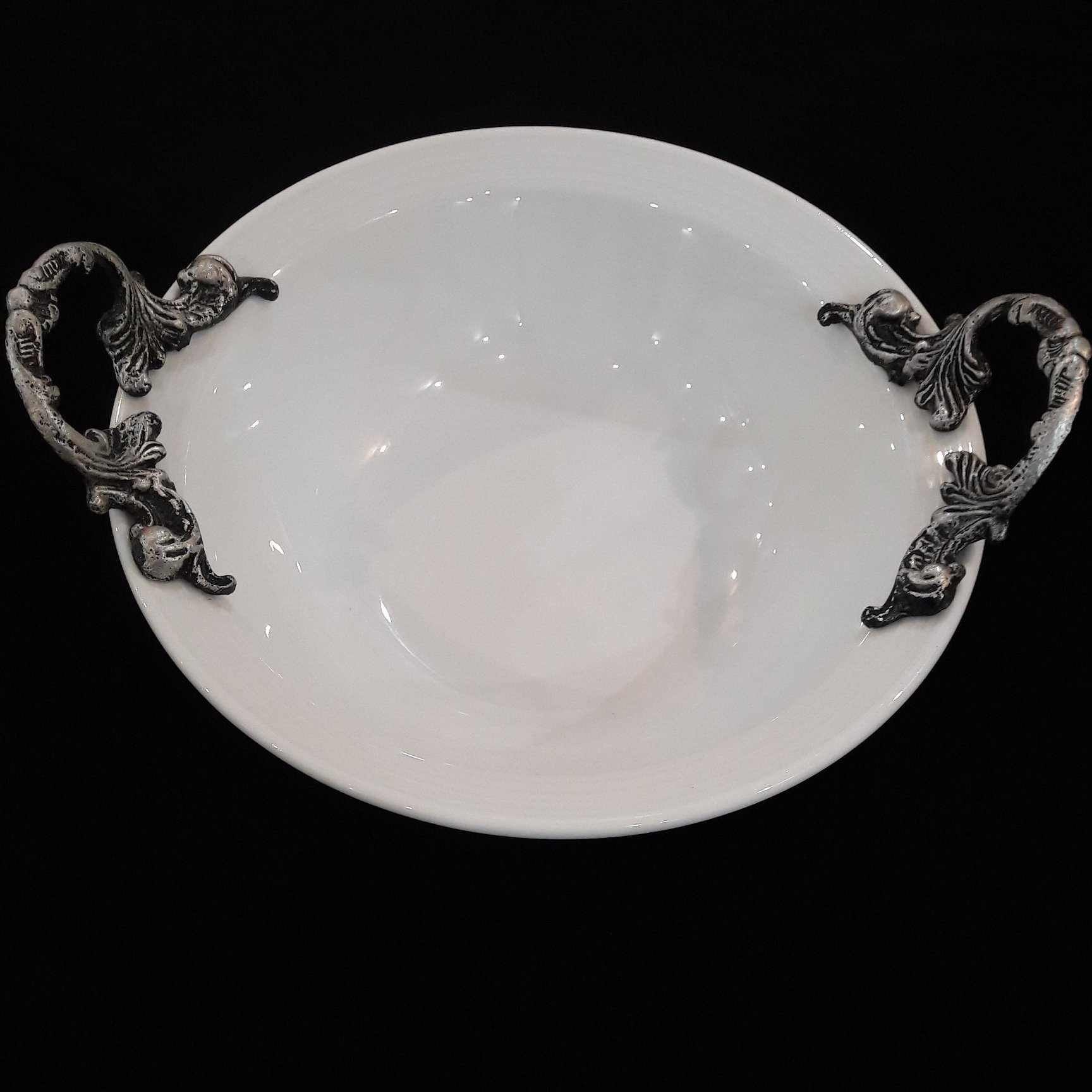 کاسه گرد چینی زرین با دسته و پایه پیوتر قطر 27 سانت جنس چینی زرین مناسب برای سرو سالاد .اجیل .میوه .سوپ و ...