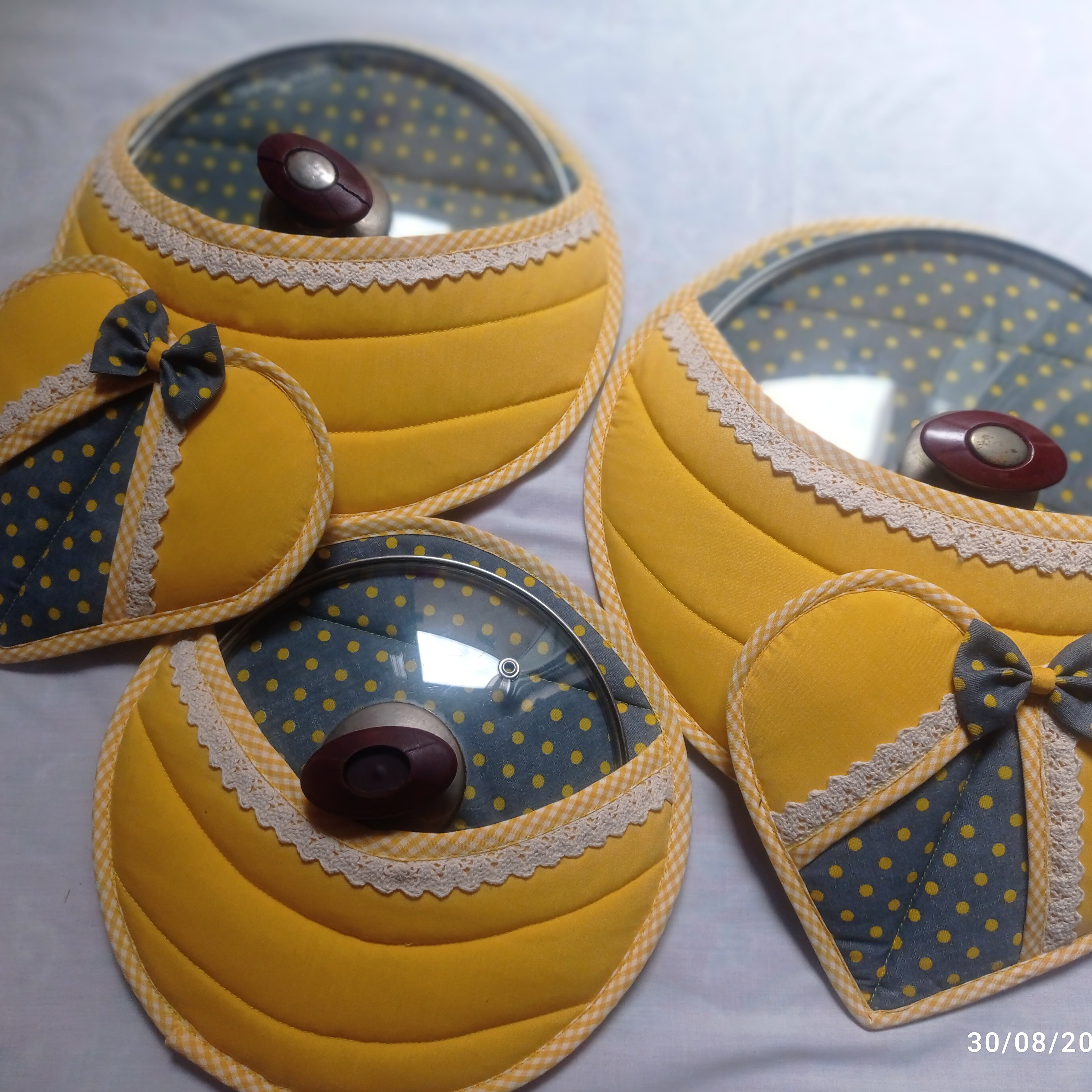 این نیم ست از سه سایز دمکنی کوچک ،بزرگ،ومتسط به همراه یک جفت دستگیره قلبی ویک جفت دستکش فر میباشد