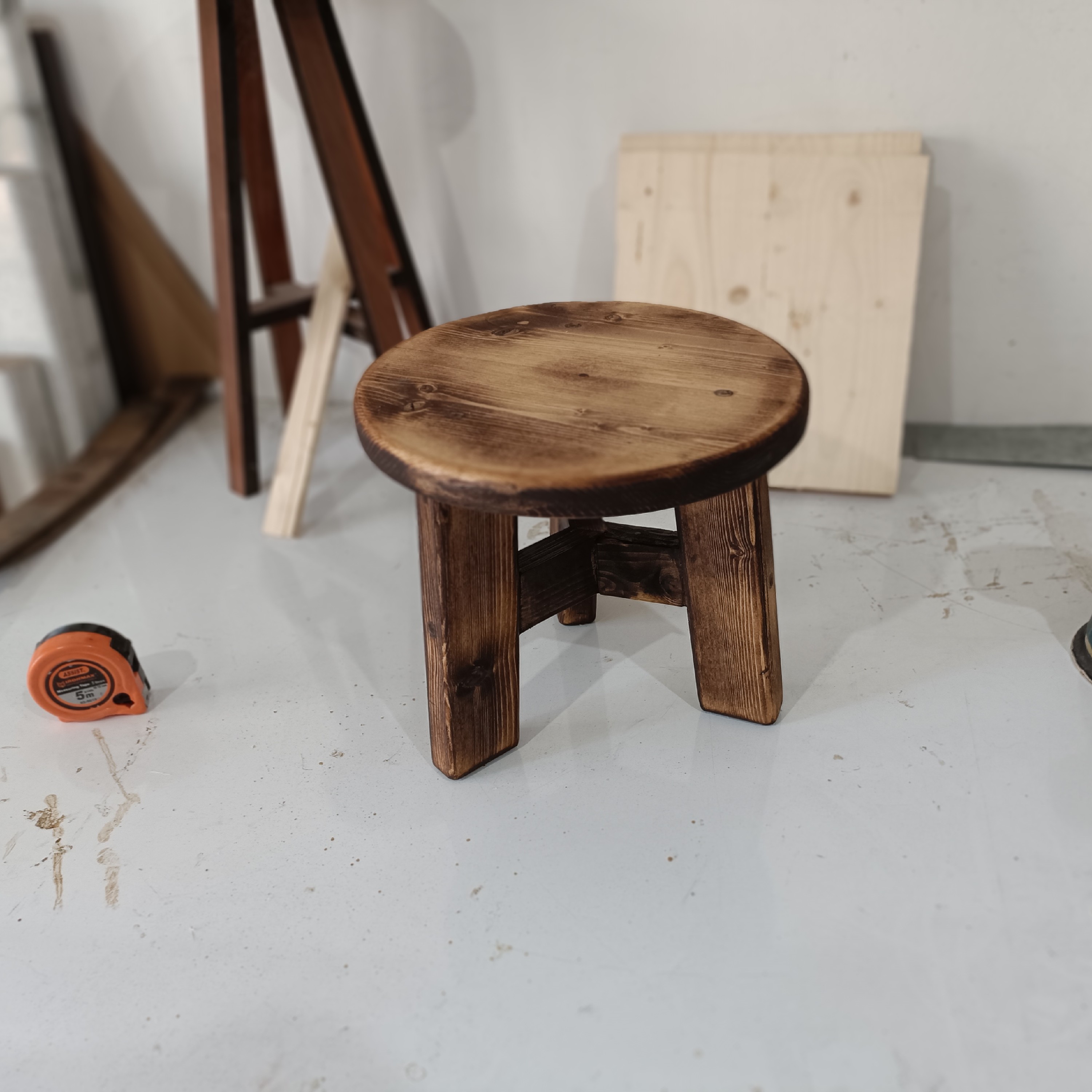 صندلی و چهارپایه چوبی کوچک موارد استفاده برای نشستن و استند. استفاده شده از مرغوبترین نوع چوب کاج . سبک و مقاوم