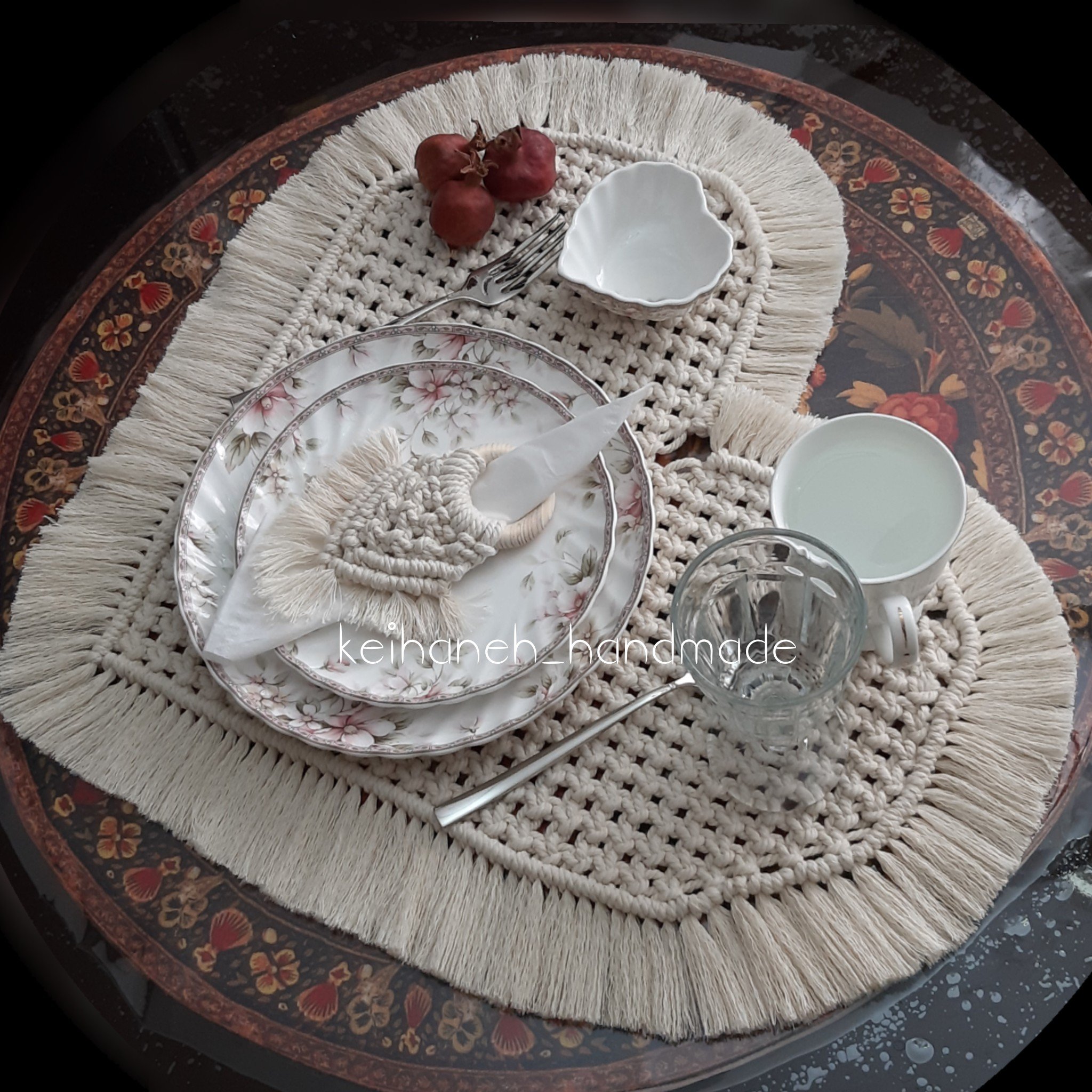 این زیر بشقابی با توجه با سایزی که در عکس مشاهده میکنید،قابل استفاده به عنوان رومیزی برای میز های دو نفره تیز میباشد برای تغییر رنگ و سایز و تعداد مورد نظر،در قسمت پیام،پاسخگو هستم دوست عزیز به دلیل تغییر قیمت متریال،به احتمال زیاد با افزایش قیمت روبرو هستیم،برای استعلام قیمت جدید،پیام دهید. با تشکر کیهانه