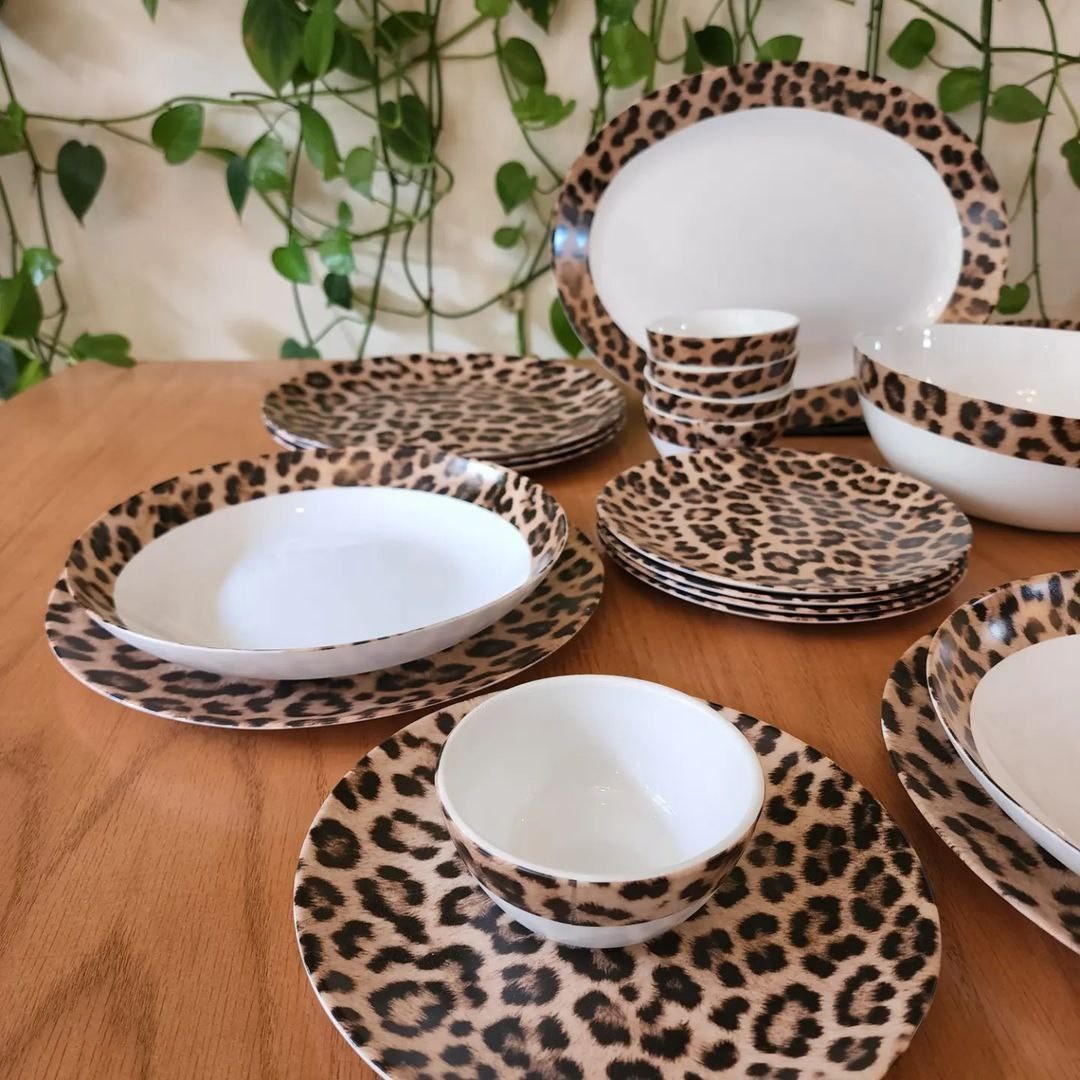 سرويس غذا خوری وارداتي پلنگی قابل استفاده در ماشين ظرفشويي گريد A+++ 26 پارچه شامل 👇🏻 پلوخوري ٦ عدد خورشت خوري ٦ عدد ميوه خوري ٦ عدد ماست خوري ٦ عدد ديس پلو ١ عدد كاسه سالاد ١ عدد