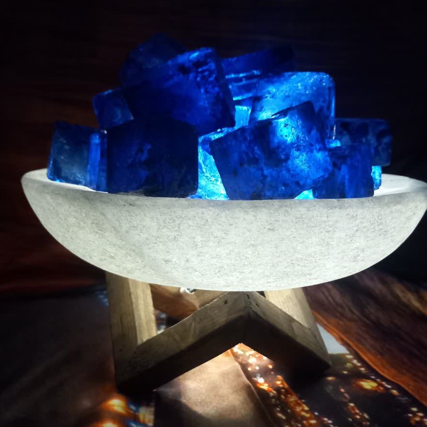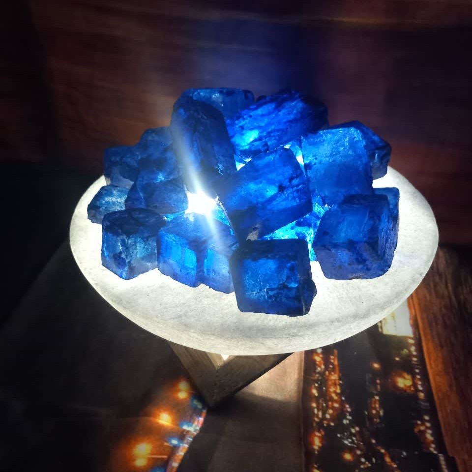 آباژور کاسه ی نمکی یا پایه چوبی و سیم قطع و وصل دارای تکه های نمک با رنم دلخواه شما