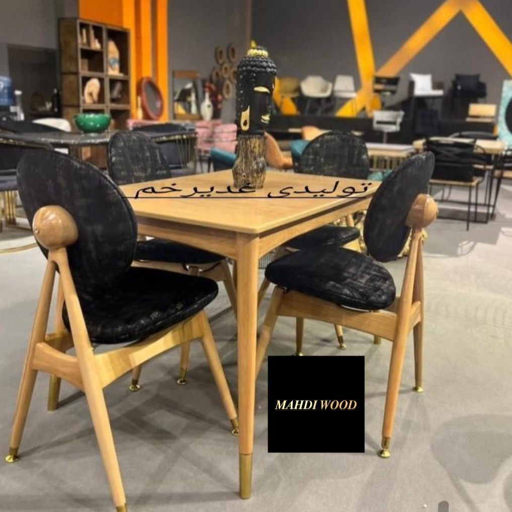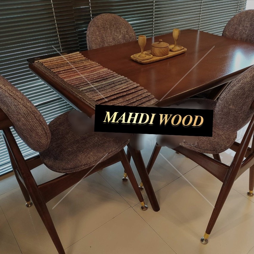 میز و صندلی ناهار خوری چهار نفره مدل مرسده سیبک فلزی ته پایه ، جنس کاملا راش گرجستانی حتی اتصالات مبلمونسرا مدل 216869