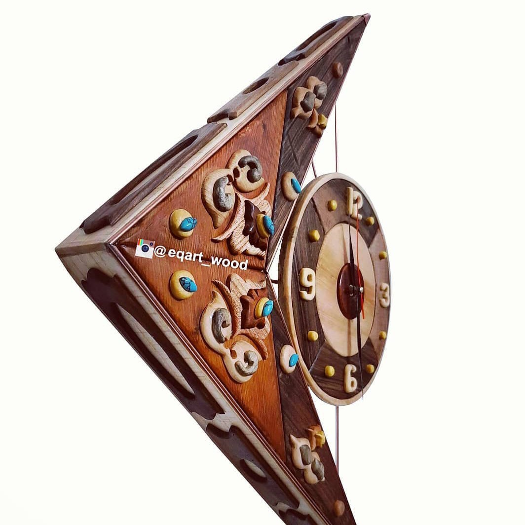 ساعت دیواری چوبی بسیار زیبا و نفیس معرق و منبت کاری شده و سنگ های تزیینی فقط یک نوع از این مدل ساخته شده و در صورت درخواست بیشتر قابل سفارش برای ساخت می باشد
