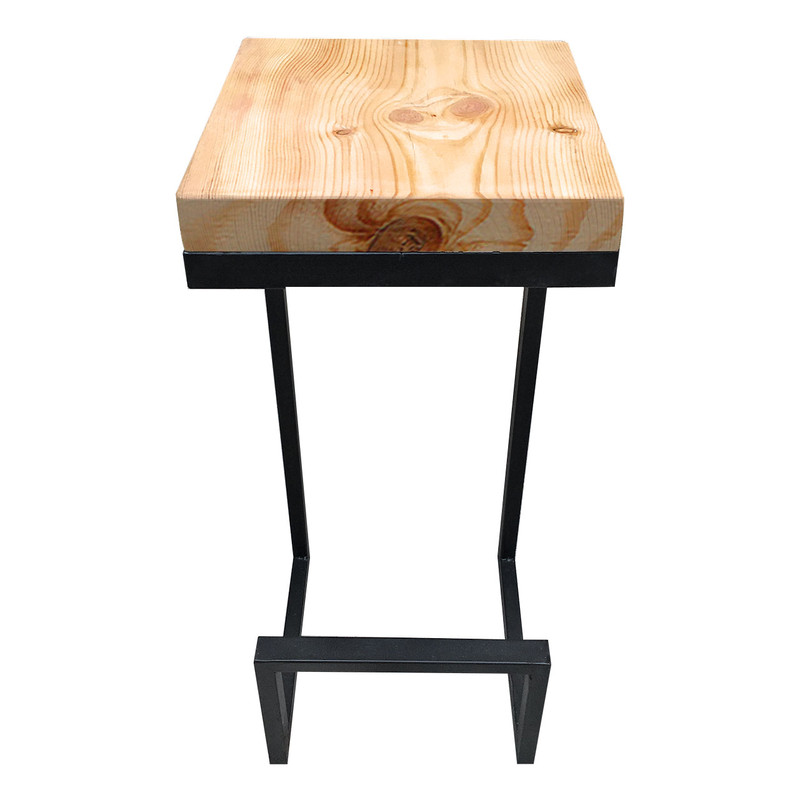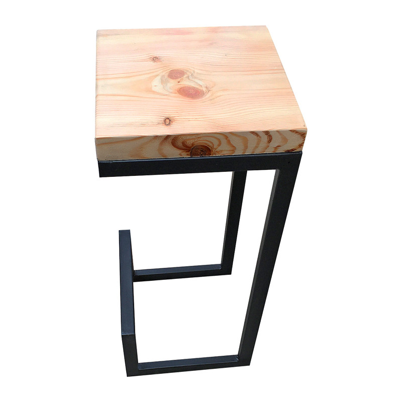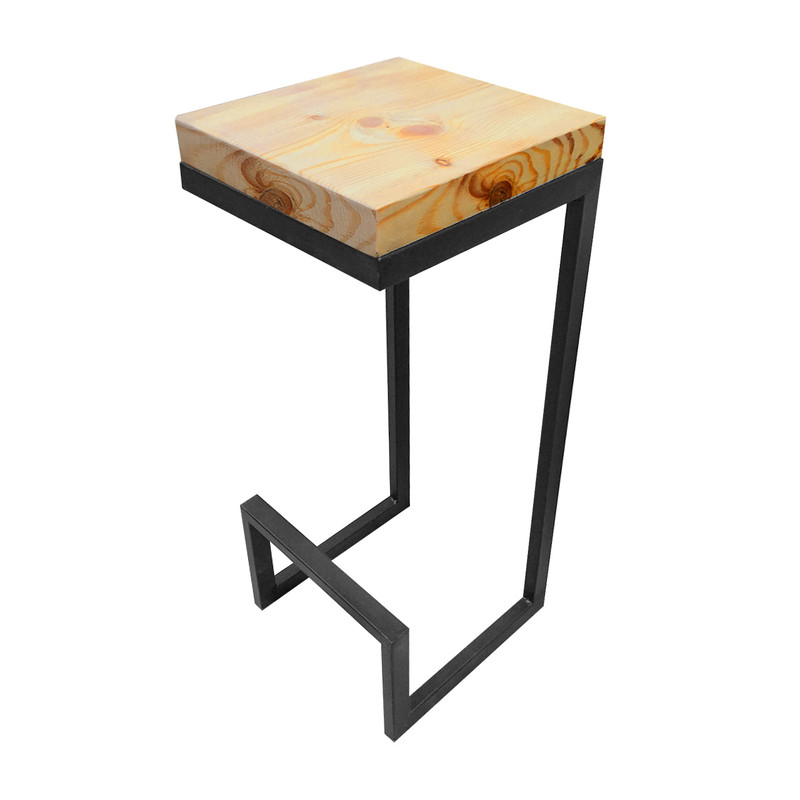 محصولی دست ساز . ترکیب طراحی مینیمال پایه های فلزی و سطح نشیمنگاه یک تکه ی چوب خوش نقش روسی به ضخامت 4/5 سانتیمتر که لایه ای از نوعی رنگ تراسپارنت ( شفاف ) بر روی ان اعمال شده اولین و مهمترین سوال ذهنی مخاطب را اغنا میکند و آن چیزی نیست جز اینکه : برای نشستن به اندازه ی کافی امن و محکم هست ؟ جای پا در ارتفاعی استاندارد تعبیه شده که در رفع خستگی پاها در زمان کمتر بسیار موثر است .