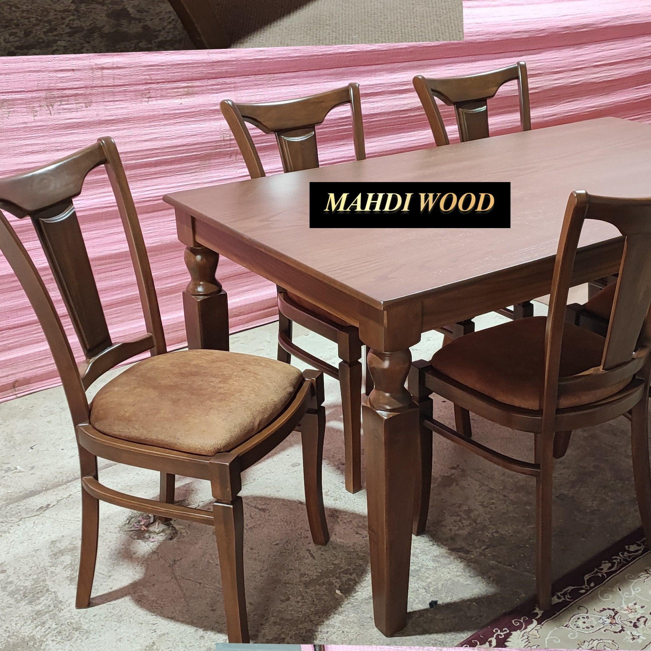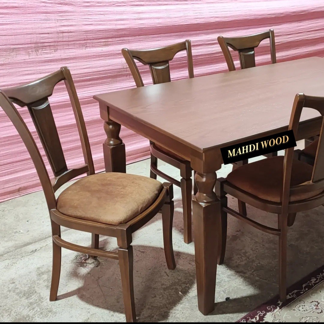 میز و صندلی ناهارخوری چهار نفره مدل کرواتی ،تماماً راش حتی اتصالات منبت کار با دست مبلمونسرا مدل 216593