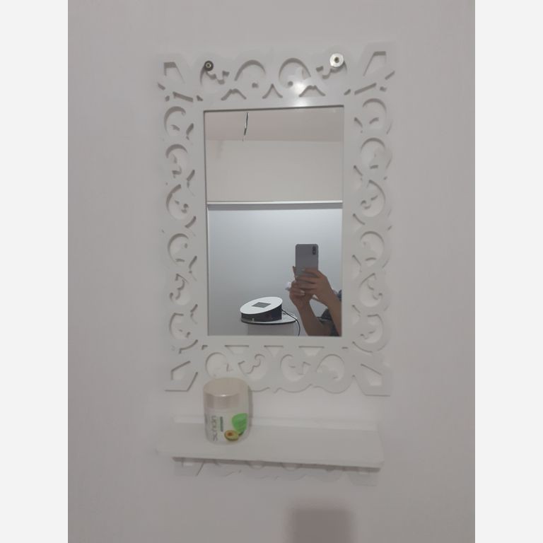 آینه مستطیل سفید با کنسول مدل یاقوت جنس pvc ضخامت ورق 8 میل نوع برش t j i ابعاد کلی قاب 35 در 47 سانت ابعاد آینه 19 در 30 سانت