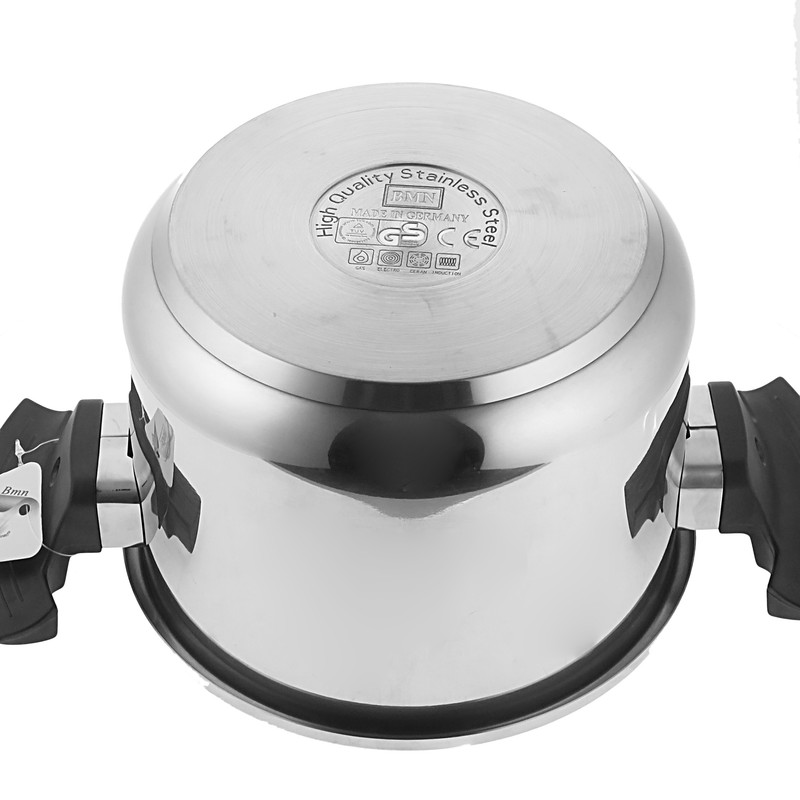 زودپز زودپز BMN یک محصول با کیفیت و تکنولوژی پیشرفته و ایمنی بالا ساخت کشور آلمان است که به شما امکان می دهد غذاهایی جالب و لذیذ تهیه کنید. تکنولوژی خلاق بکار رفته در زودپز Bmn غذا با استفاده از فشار پخته می شود که با این روش پخت غذا تا 70% کاهش یابد، که صرفه جویی واقعی انرژی و زمان است و غذا املاح و ویتامین های خود را حفظ می کند.این زودپز به شما این امکان را می دهد تا مواد غذایی را مستقیماً از فریزر و یا به روش رژیمی با استفاده از سبد مخصوص بخارپز آن با کمترین زمان بپزید. زودپز دارای درب کلیپسو با قابلیت باز و بسته شدن آسان می باشد . کف این زودپز از ویژگی TransTherm استفاده شده است، این ویژگی کمک می کند تا گرما به طور یکنواخت در تمامی قسمت ها پخش شده و مواد غذایی درون قابلمه به صورت یکدست پخته شود. شما می توانید ظروف استیل تان را به راحتی با آب گرم و مایع ظرفشویی تمیز نمایید، همچنین می توانید آن ها را در ماشین های ظرفشویی نیز شستشو دهید، .. از زودپز BMN آلمان می توانید بر روی انواع اجاق های غذا پزی از جمله گازی و برقی و .. استفاده نمایید زودپز bmn دارای چند نشان استانداردهای جهانی و تاییده اروپا و ایمنی بسیار بالا میباشد. شما از زودپز bmn طوری لذت خواهید برد که آشپزی بدون آن دیگر برایتان ممکن نخواهد..