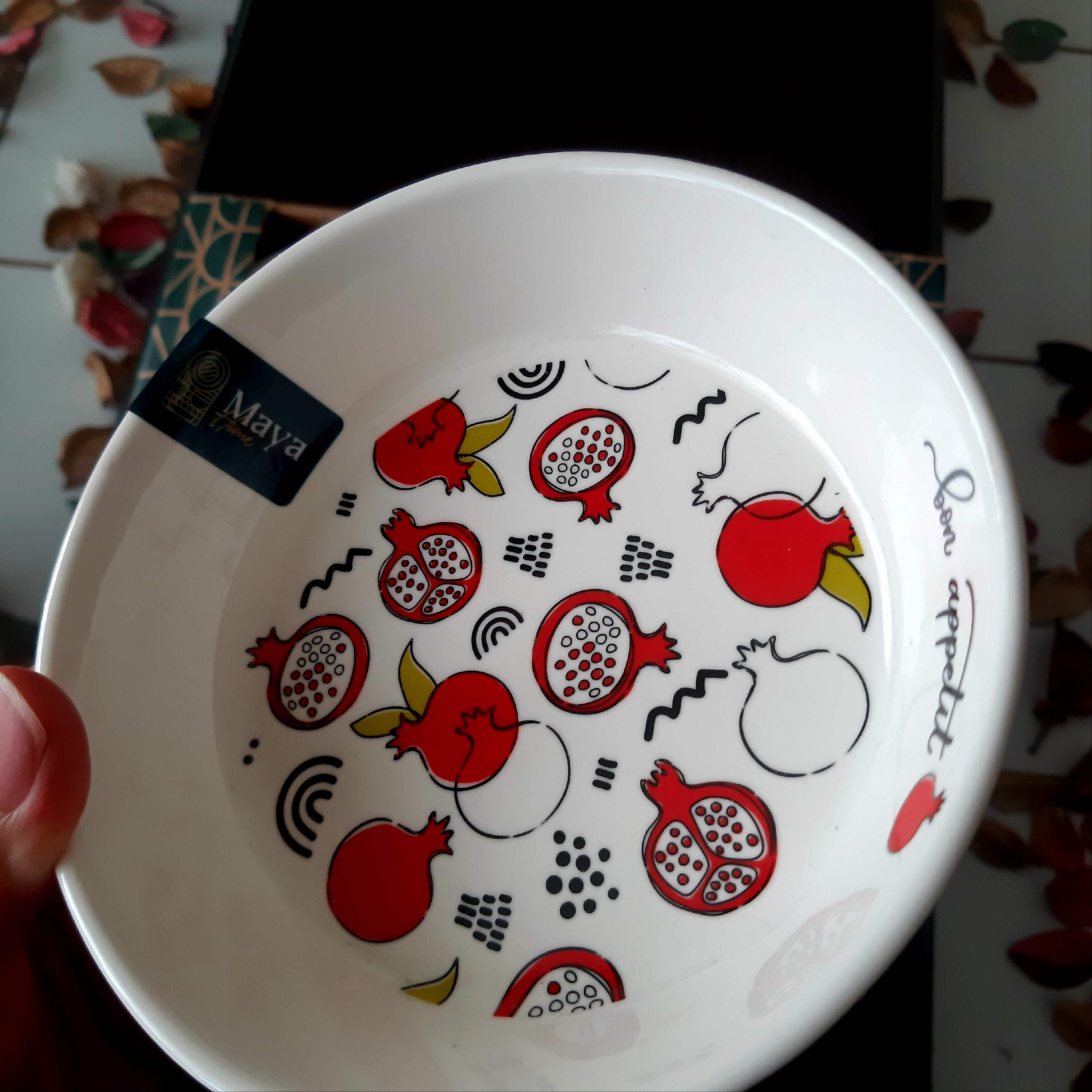 ظرف فانتزی صبحانه خوری سرامیکی مایا مدل گرد گل انار مخصوص صبحانه کره پنیر مربا عسل و... و ظرف تنقلات کودکان