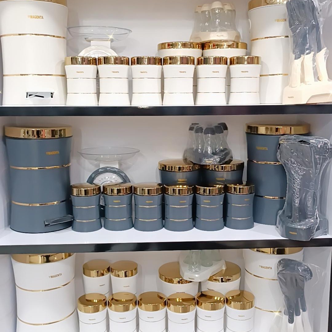 سلام ✅فروش ویژه سرویس اورانوس لاکچری مناسب سخت پسندان ✅برند بیگنس 29 پارچه مفید از جنس فلز رنگ بیرونی کورهای با کیفیت رنگ ثابت ضد خش ✅در رنگ های شیک و لاکچری ✅طرح زیبا لاکچری درب طلایی رنگ ثابت رنگ ثابت با ضمانت 29 پارچه شامل ✅جای ادویه جای سطل زباله جای برنج جای قند ✅جای شکر 4عدد جای ادویه کوچک 2 ملاقه بزرگ ✅کیفیت عالی مناسب سخت پسندان دارای یک سال ضمانت