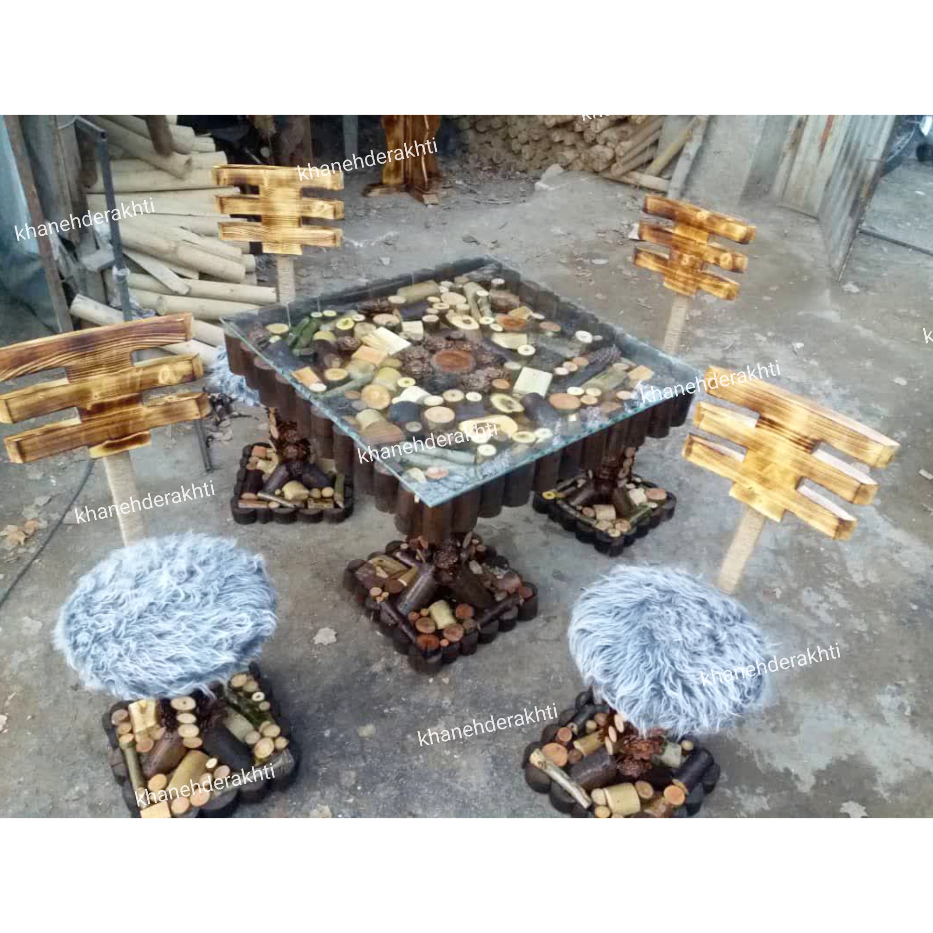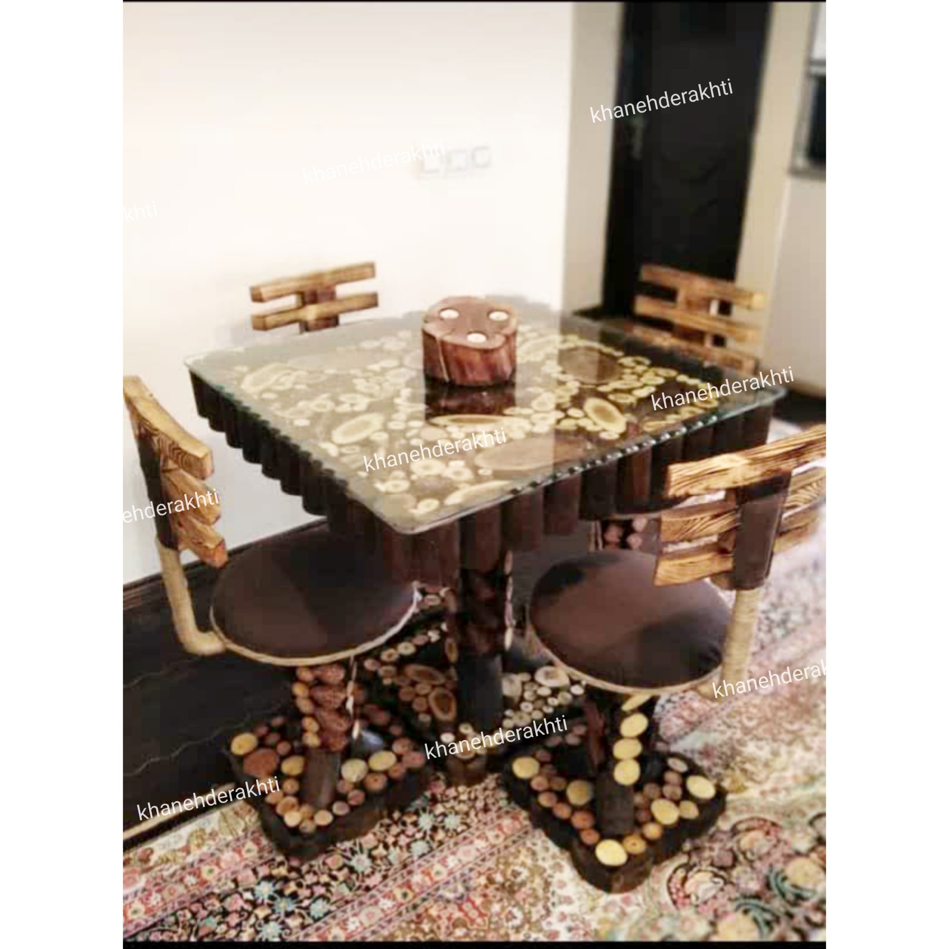 میز نهار خوری 4نفره جنگلی ناهارخوری سنتی میز غذاخوری جدید روستیک کمجا درختی ارسال بصورت مبلمونسرا مدل 216465