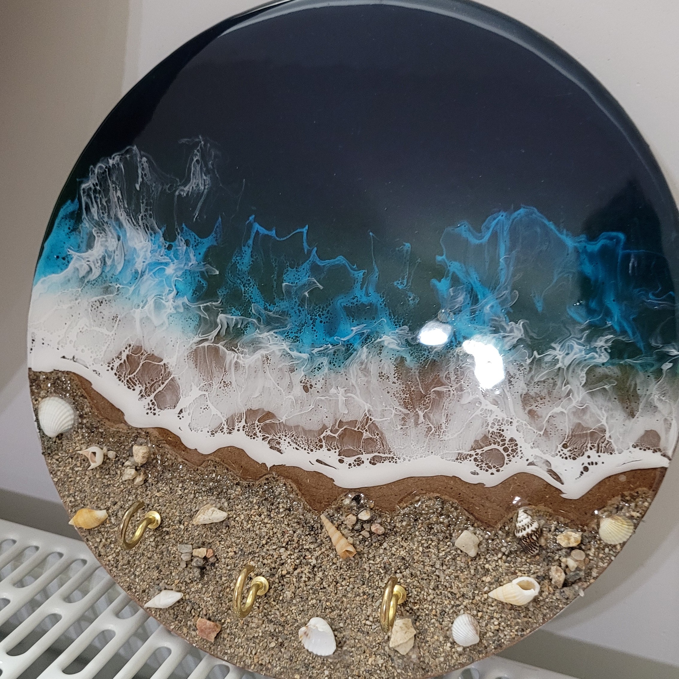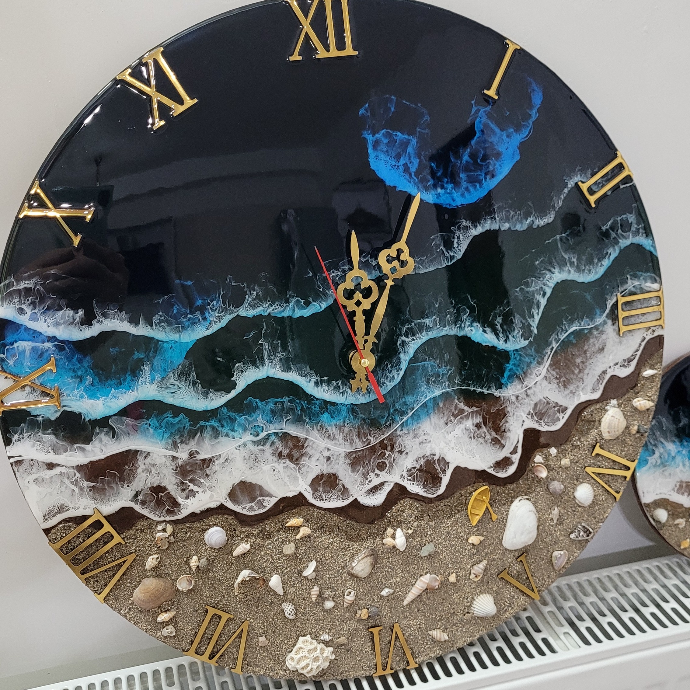 ست ساعت و جاکلیدی دریای رزینی صدف و شن قابل تغییر دادن هست با این ست زیبا میتونیددد یه فضای دریایی توی خونتون داشته باشید و لذت ببرید این دو محصول فروخته شده و برای نمونه و ایده در غرفه اشتراک گذاری شده🩵