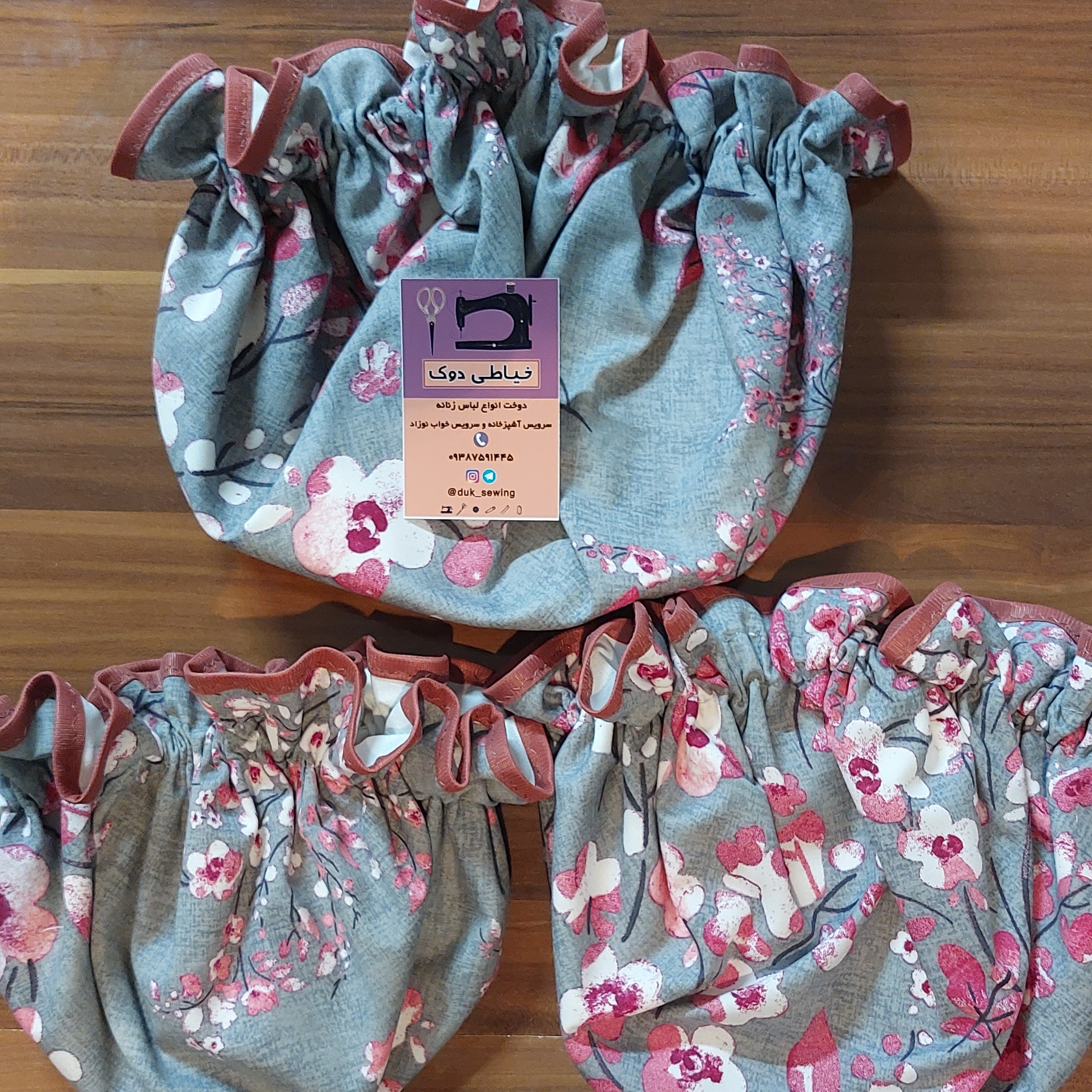 سرویس دم کنی سه تای گل دوخته شده از سه لایه پارچه یک پارچهتترون نخ ودولایه مدخال دمکنی ساده دولایه پارچه تترون نخ وداخل لایکو هست طرح ها نمونه کار هست برای انتخاب پارچه در قسمت گفت گو در خدمتم