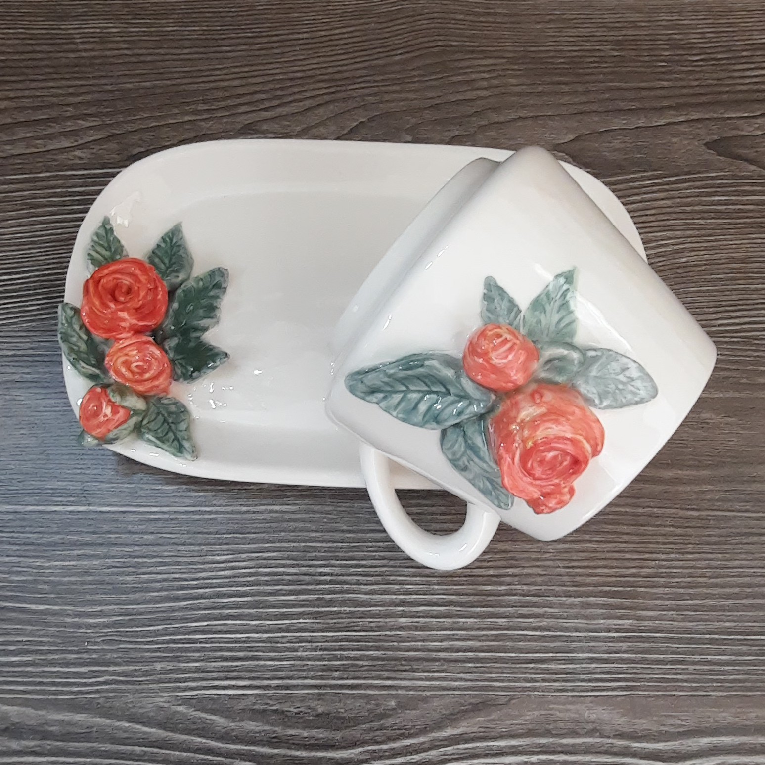ماگ وزیرماگی سرامیکی کاملا دستساز،باگل رز برجسته
