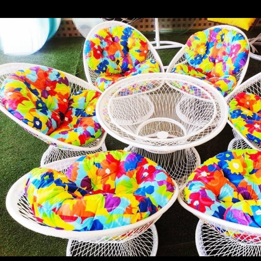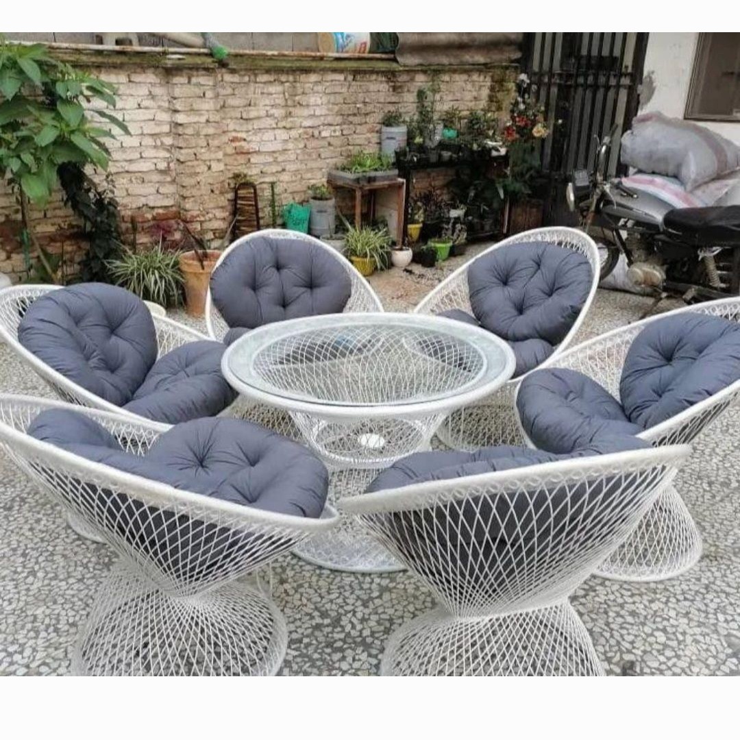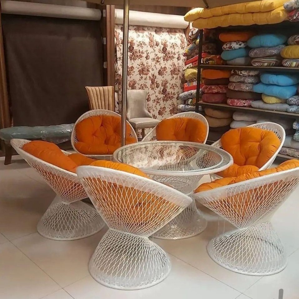 مبل باغی فلزی مدل بامبو از جنس فلز آهنی با رنگ کوره ای یا الکترواستاتیک و میز شیشهای است که از مدلهای بسیار شیک، زیبا و پرطرفدار محصولات ویلایی محسوب میشود. صندلیهای این ست، از تشکی با جنس پارچه و پر شده از ویسکوز تولید میشوند. رنگ بدنه این ست ویلایی کورهای الکترواستاتیک بوده و در دو رنگ سفید و مشکی عرضه میگردد. تشکهای مبل باغی فلزی مدل بامیو ، یک تکه بوده و در رنگهای تک رنگ زرد_قرمز_طوسی_بنفش و طرح دار گلدار صورتی_آبی جنگلی_سبزجنگلی_موجی_طـوبی دوخته و ارائه میگردد. قطر میز این مدل قابل سفارش در اندازه 100 سانتیمتر میباشد.